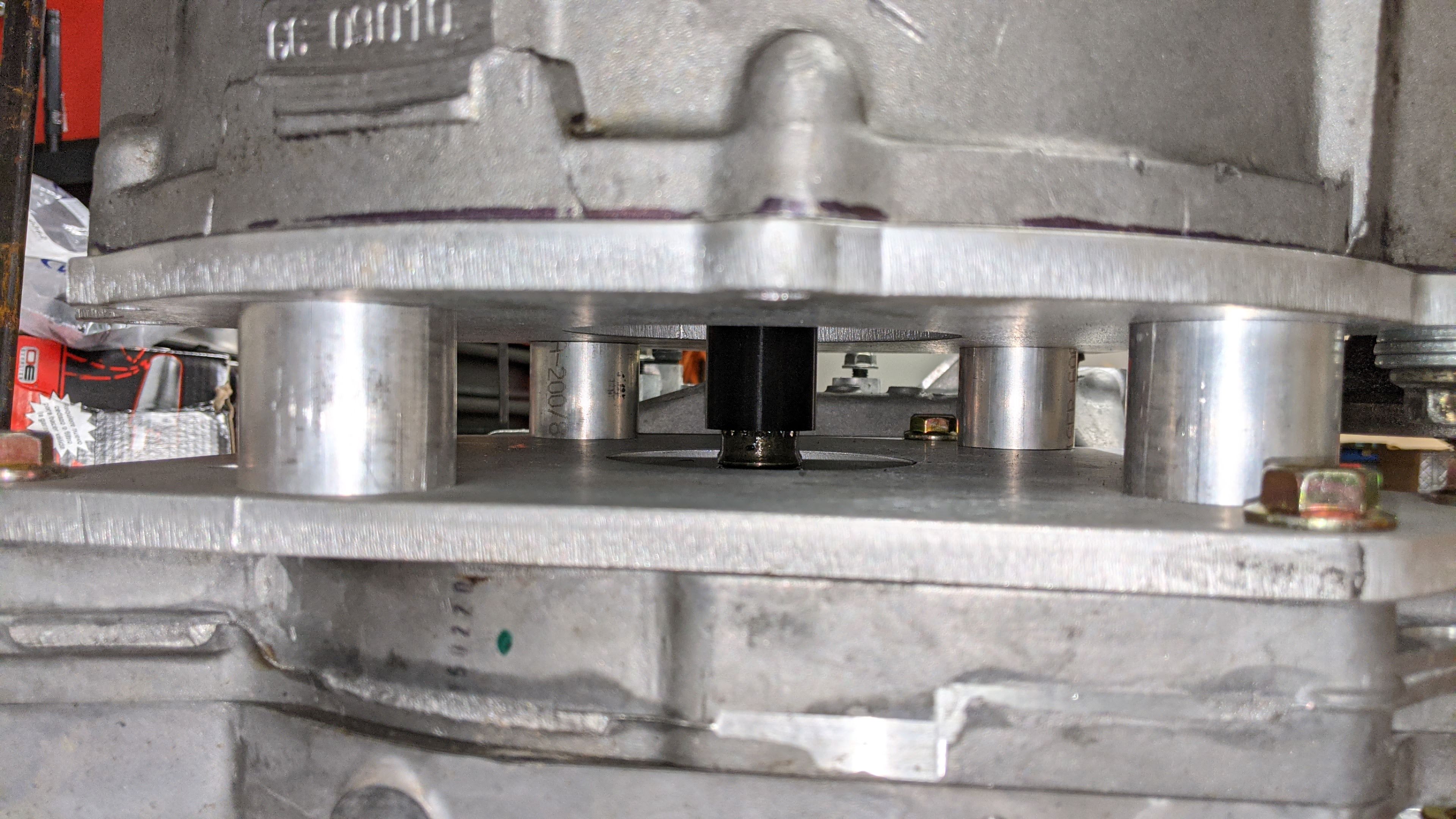I was thinking that I could 3-d print a shield to enclosed the center passthroughs, or temporarily use some silicon tape to wrap around the adapter plate spacers. neither of which i'll probably do on this project. but i do plan on doing more Leaf swaps in the future, and they will highly likely be FWD VWs, so i could be looking to solve this problem eventually.