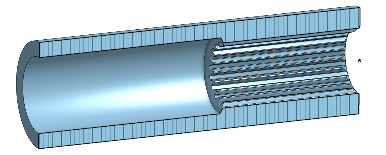 Because a broach operation needs to have proper chip clearance on the backside, broaching a tube with 2 different size splines was not a very manufacturable option. instead, i'll have the Leaf splines broached and have the opposite side bored to accept a clutch disc center - press fit and welded. here is a section view: