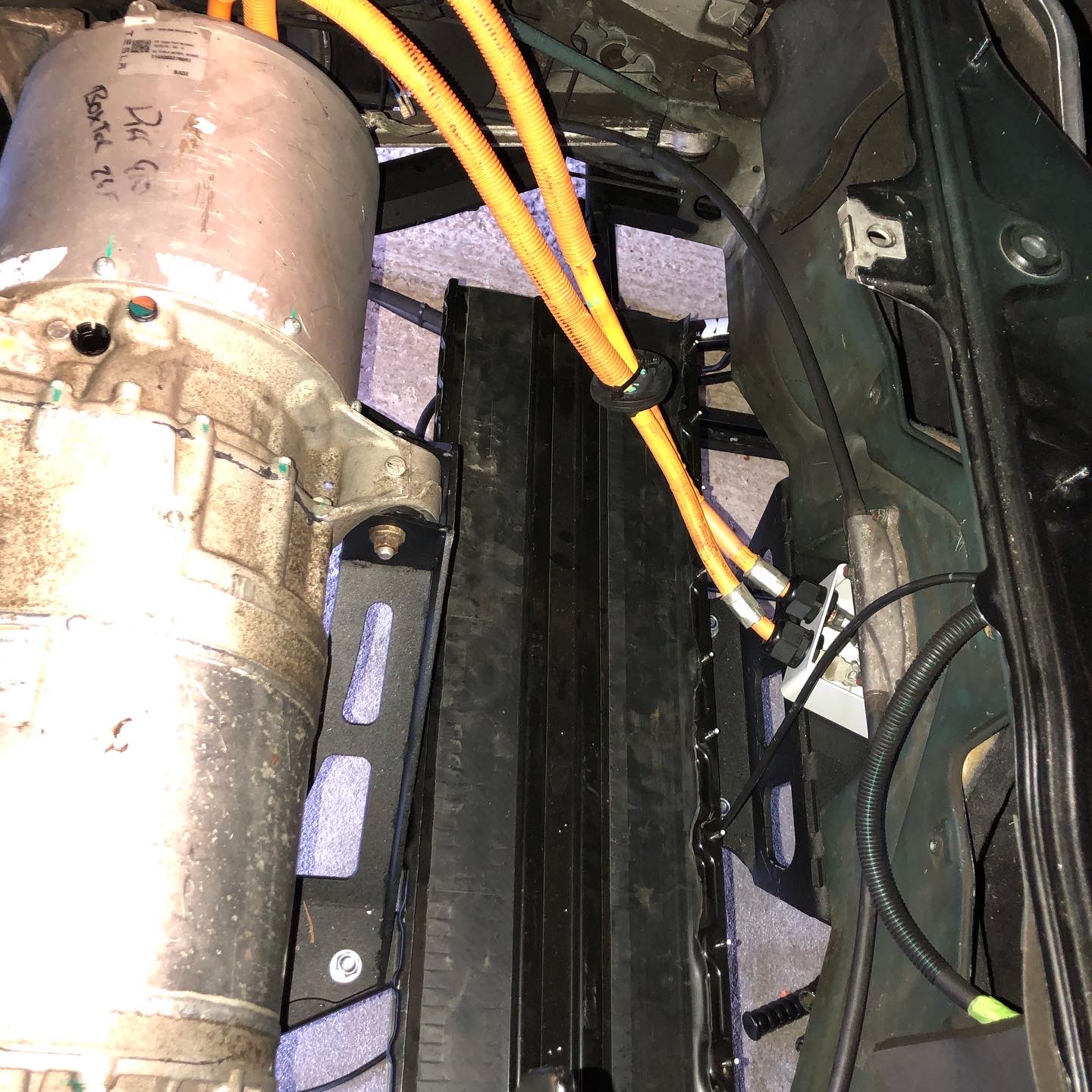 I'm mounting all my batteries in the engine compartment along with a Siemens motor running with the transmission. I see that you have about half the Volt battery in the engine compartment. Are they just mounted straight to your motor support system?
