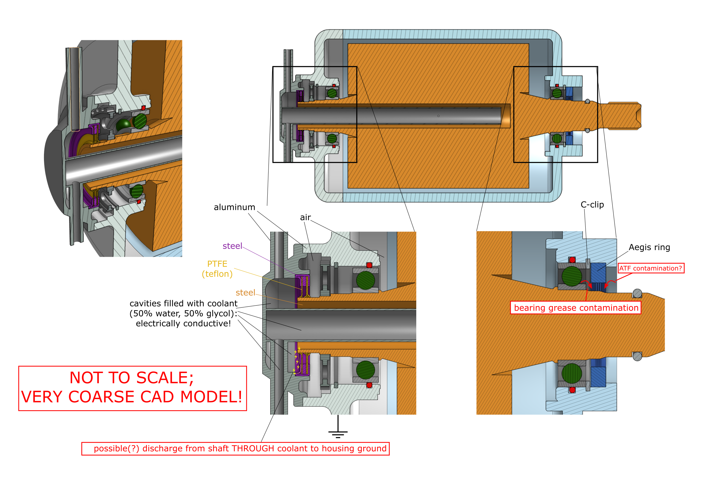 Note that the latter seal is from Chenming and looks a lot like Tesla's original seal. After less than 42k miles, this Tesla Seal failed too, allowing Dexron VI (from gear box) into the rotor cavity AND subsequently into the inverter
