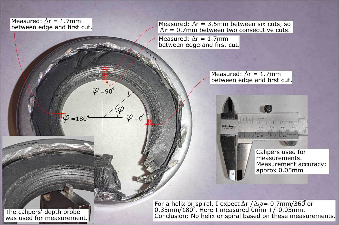 So I think that the cuts are concentric, primarily for structural instead of hydrodynamic purposes. It would be nice if someone would repeat this measurement on his own seal to verify. Note that I bought another seal from Ceimin (separates rotor cavity from gear box) with helix/spiral protrusions in both directions for forward and reverse driving:
