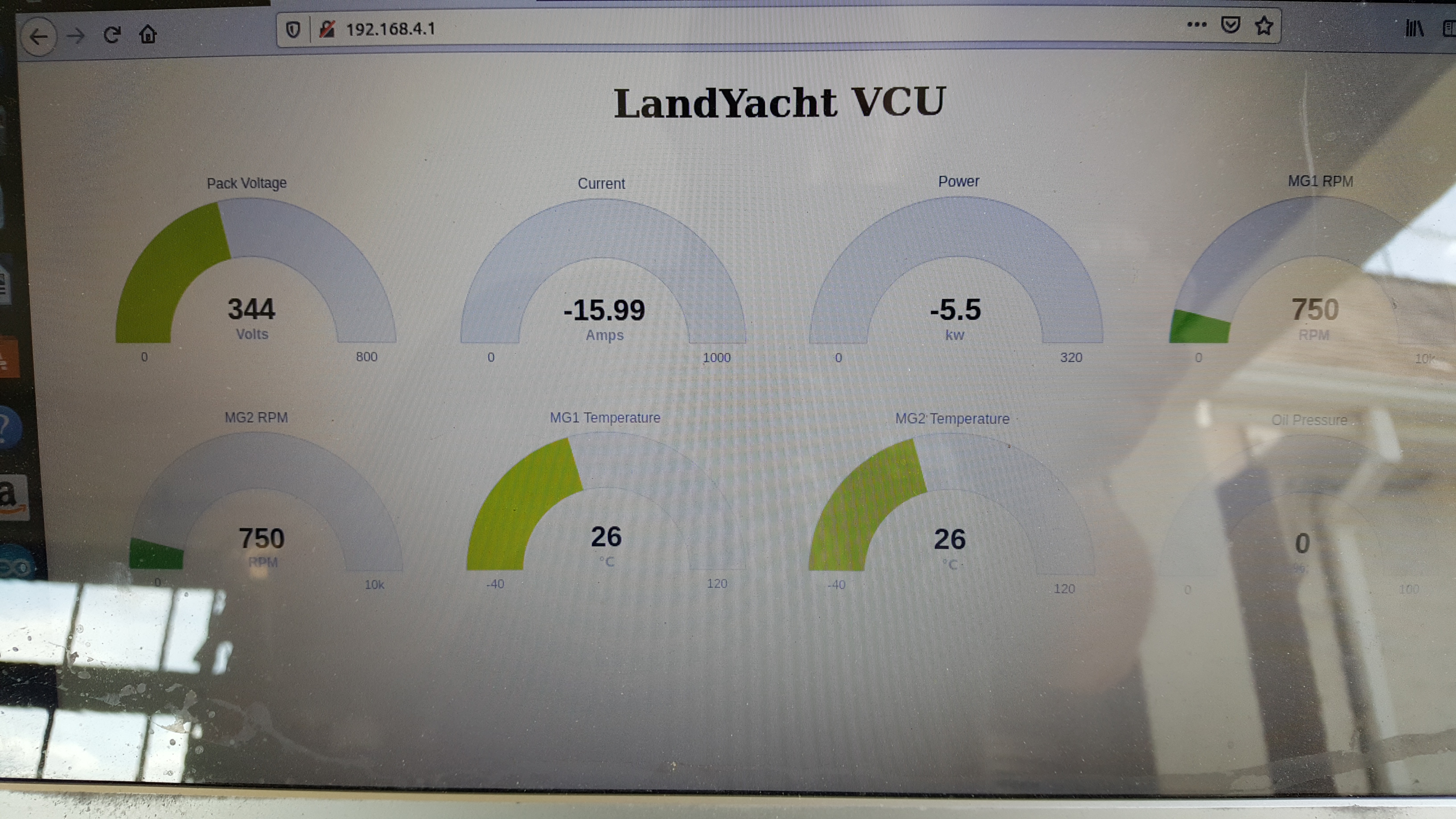 So of course I selected 5th gear, pulled on the brakes and wound on the power. MG2 shuts down at 500amps peak. That's around 350amps rms. Even in 5th with a 530d drivetrain, brakes on and the wheels chocked she was creeping forward.
