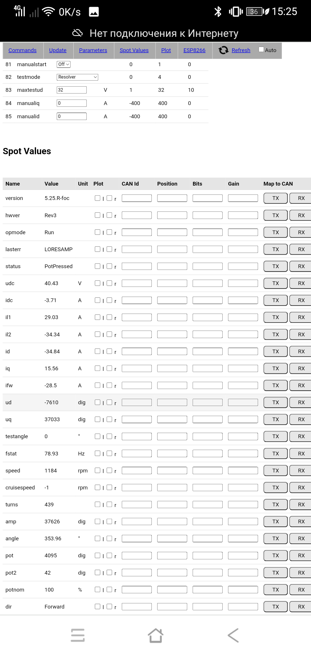 from the throttle handle, the motor is controlled as usual. it was not possible to get the motor rotation in manual start mode and attempt settings. a quiet squeak was like a normal start or angle search in the standard way, but there was no real rotation.