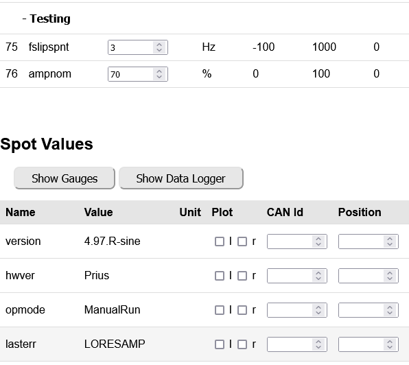 Name Value Unit Plot CAN Id Position Bits Gain Map to CAN