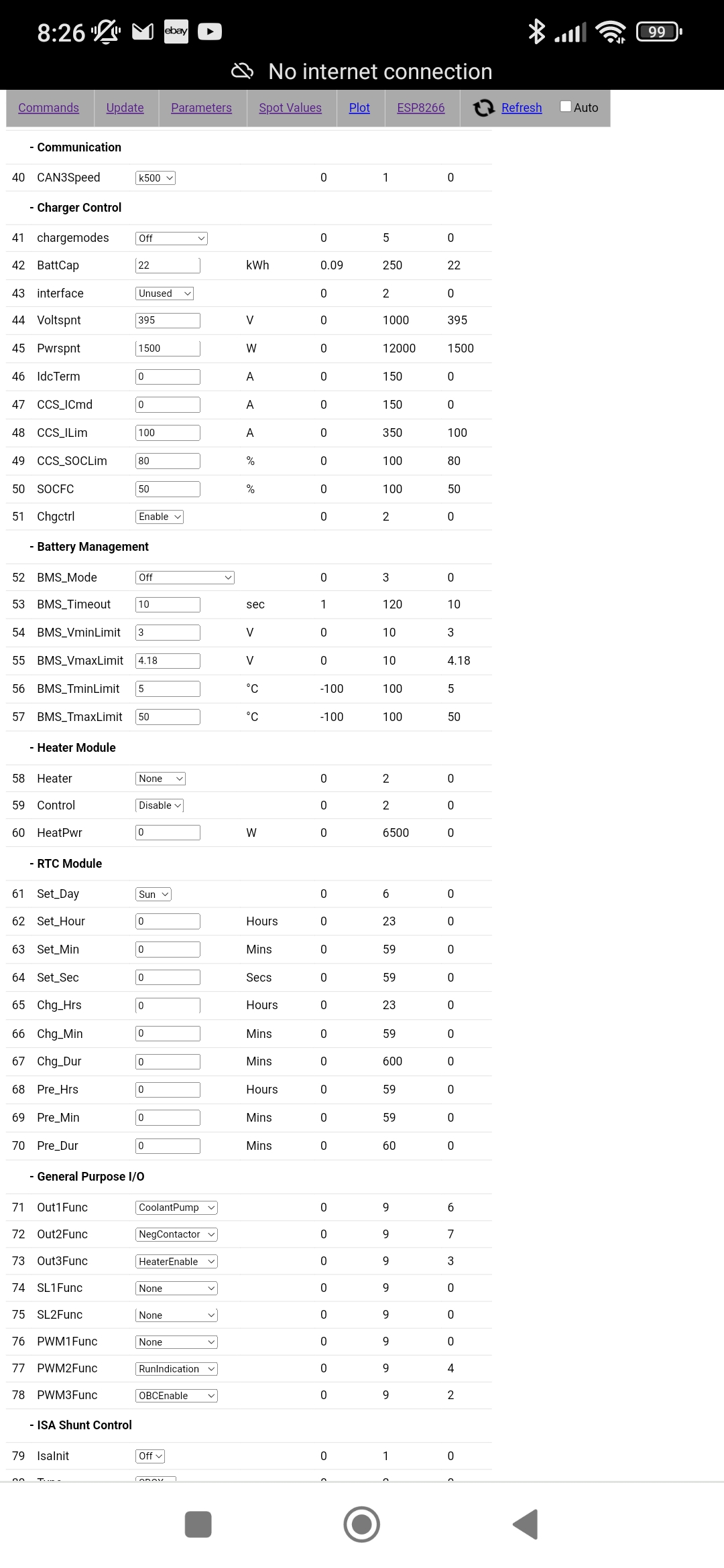 Yes I've dropped that down now as well on BigPies recommendations.andybpowell wrote: ↑Sat Dec 09, 2023 9:38 am Udcmin is set to 50v but is reading 0v as you have no shunt