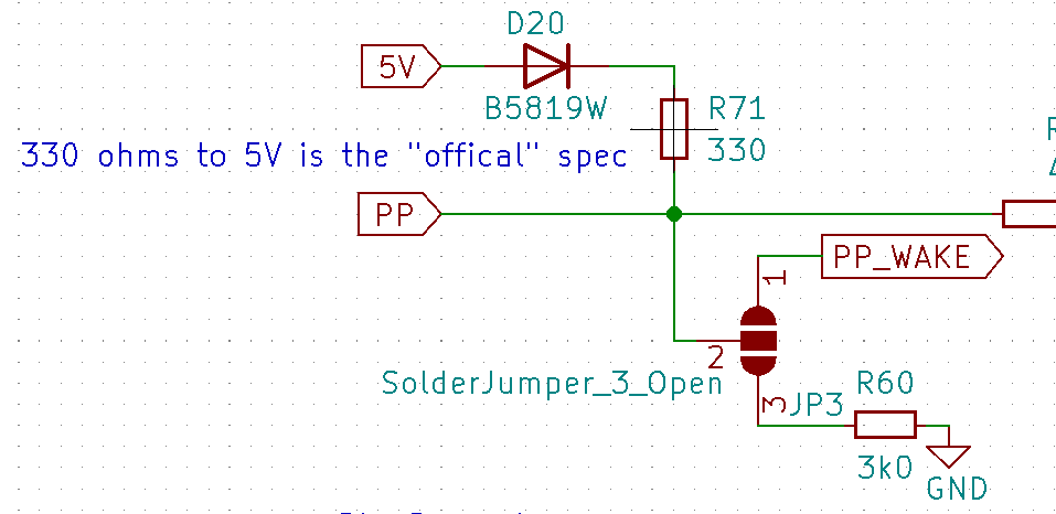 I have added the resistor and changed the PP wakeup back to permanent wakeup. So if you have a scenario where you expect the charge cable to be plugged in for many days you'd disable PP wakeup with the solder jumper and use CP wakeup instead.