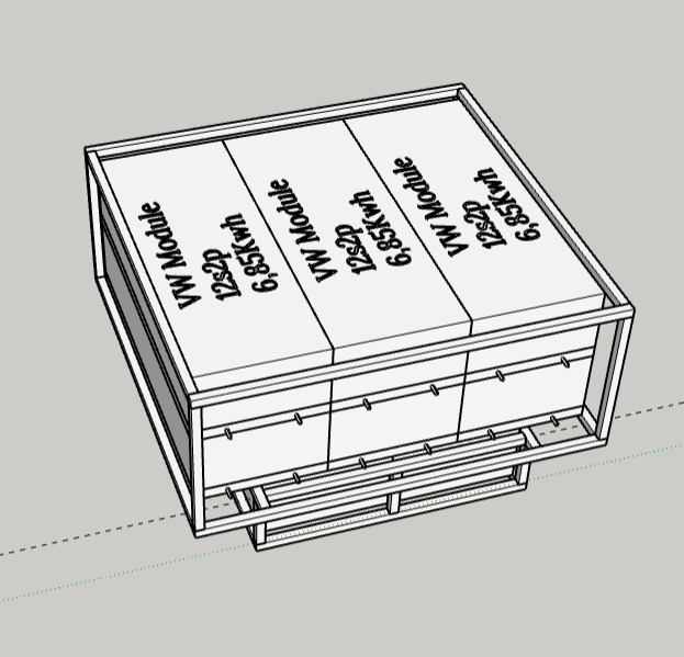 Now that the car is finally in the garage, I’m starting to think about the battery setup. I’ve decided to go with 8 modules of VW 12S2p batteries from the VW ID.3 or Cupra. And yes, I know cardboard boxes can handle *anything* I’ll try to scan the inside of the engine bay for better precision. I still need to figure out which mounts to use to keep the battery box stable and secure. I’d definitely welcome some help with that!
