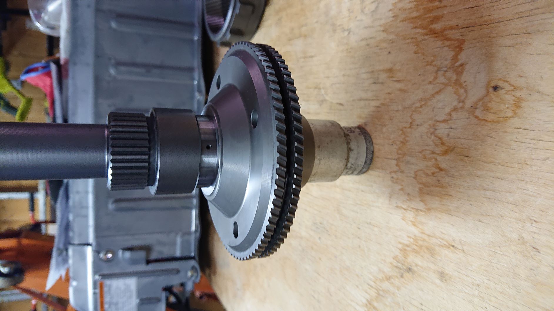 My project has finally started moving again. I have had an axle that mates with MG1 and MG2 directly. My first shaft didn't have a slot for the oil pump, but the company making the shaft have worked out a way to add the oil pump slot.