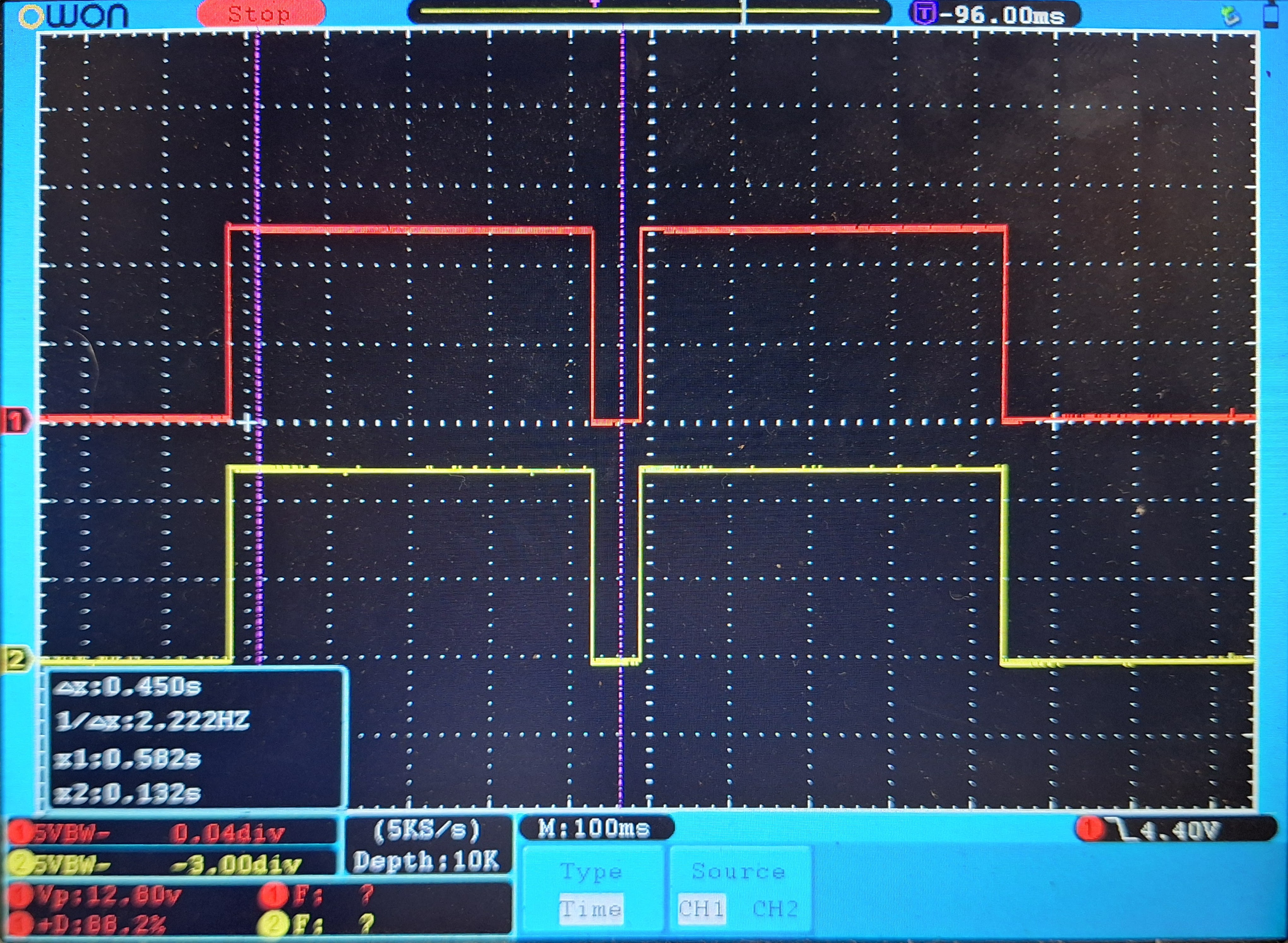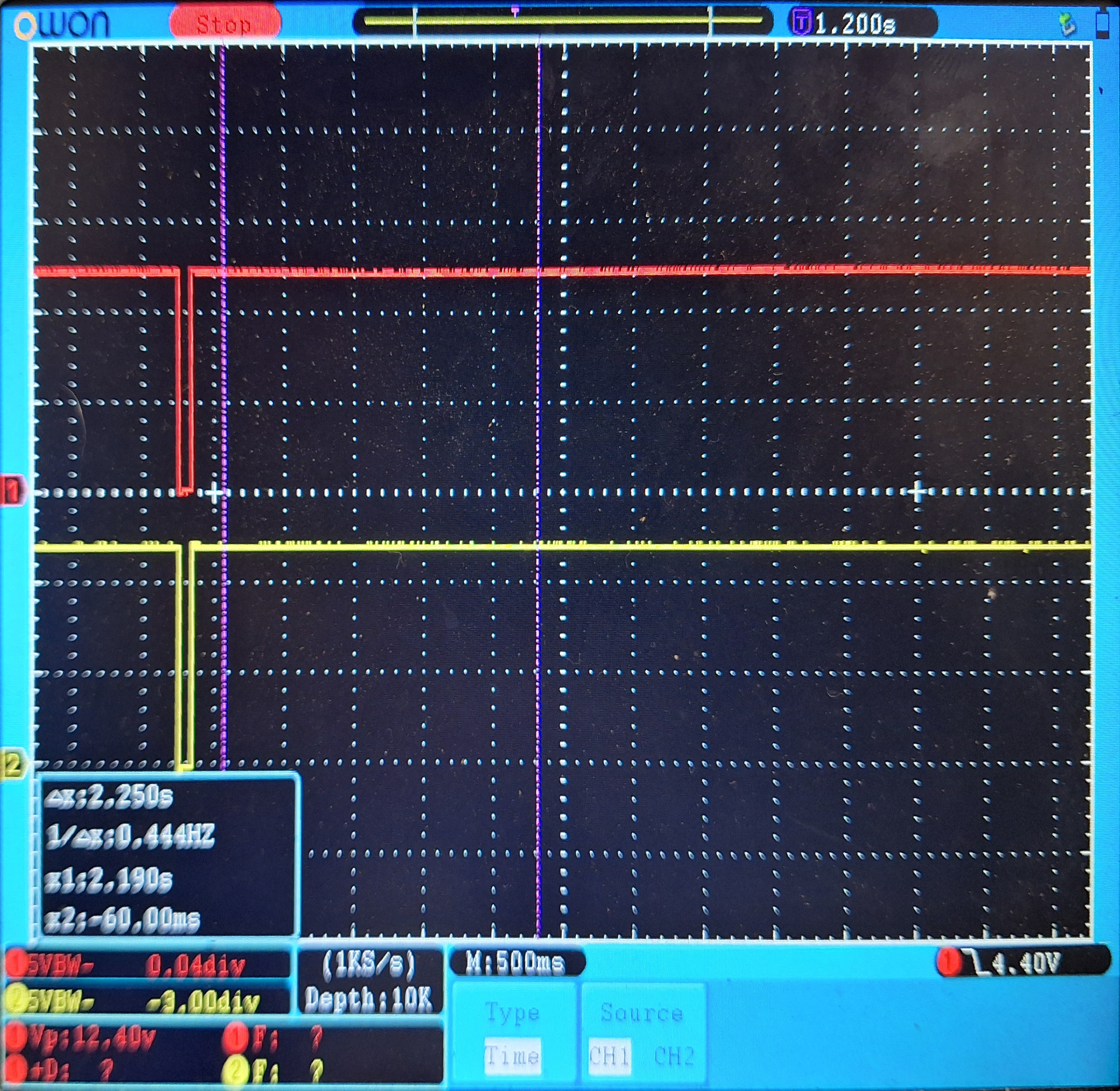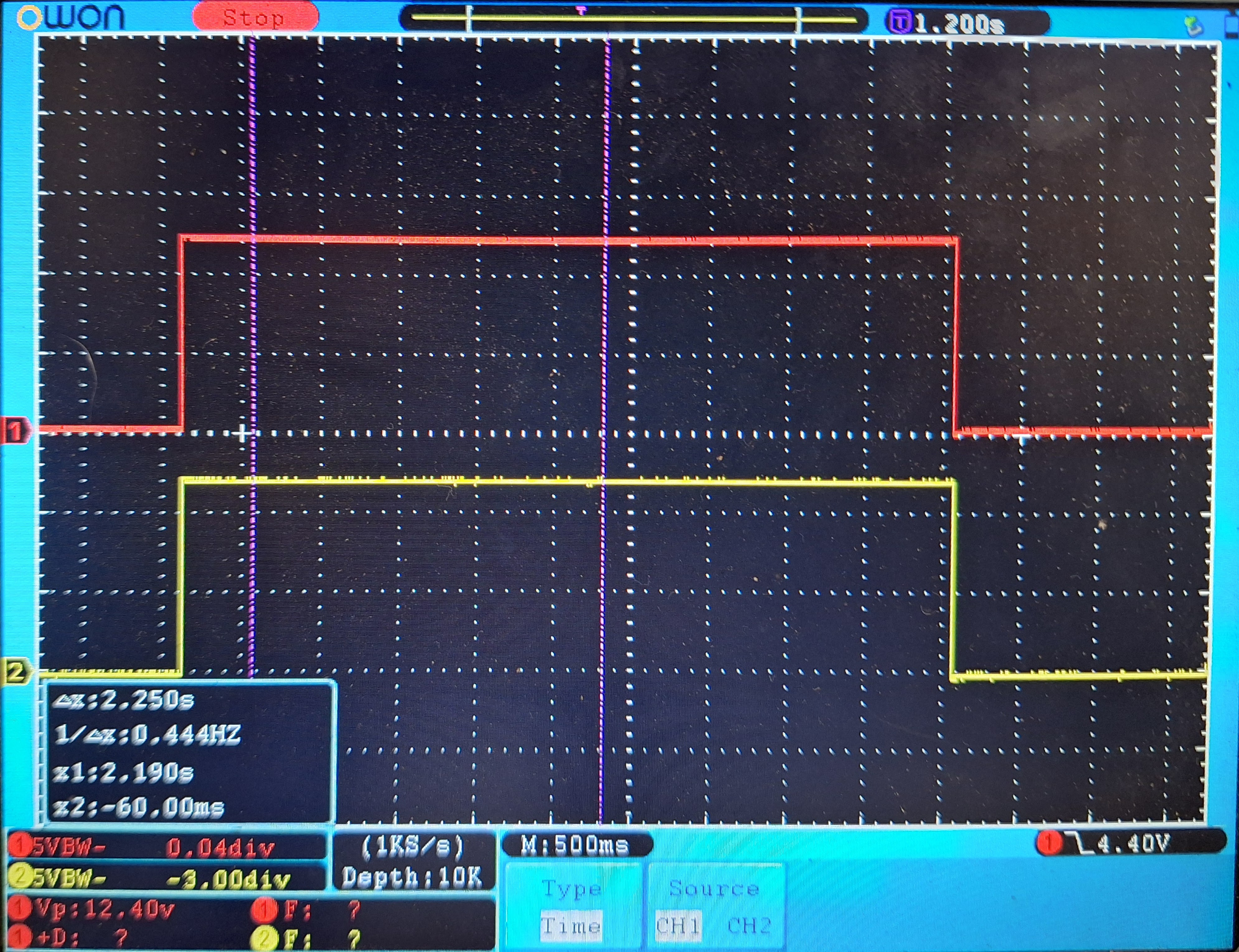 The pictures look like one cable of the motor is not connected or not driven. So on both ends of the motor we see the same voltage. If the cable between the motor and Foccci is not the root cause, we need to check what the driver does. It it possible to hook the scope to pin 1 and pin 2 of the driver IC (IC1, DRV8874)? Normally, to drive the motor, one of the pins should be high and the other low. I see no obvious reason in the software, that this control does not work.
