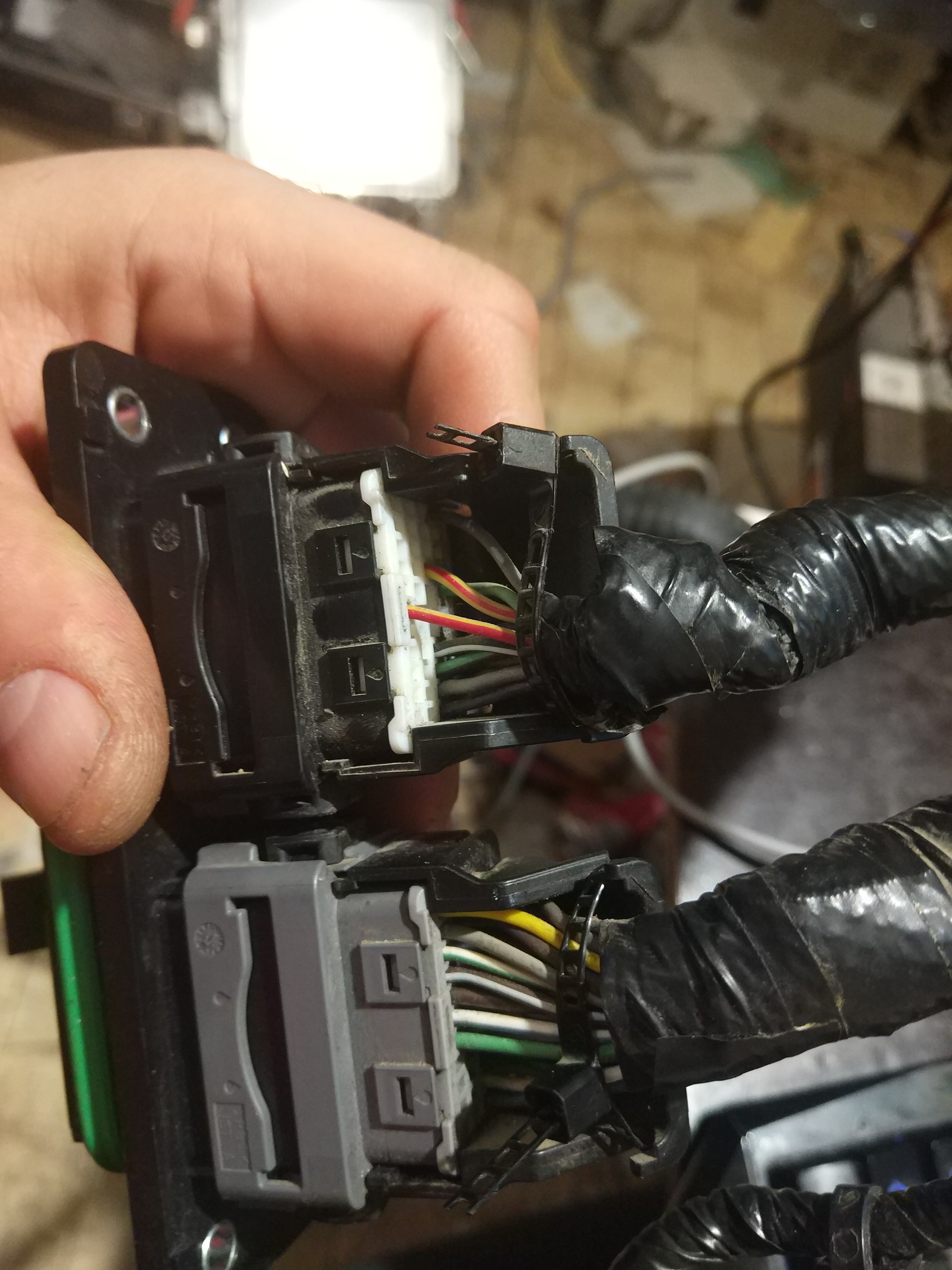 Lower connector is connected to AC compressor and heater.