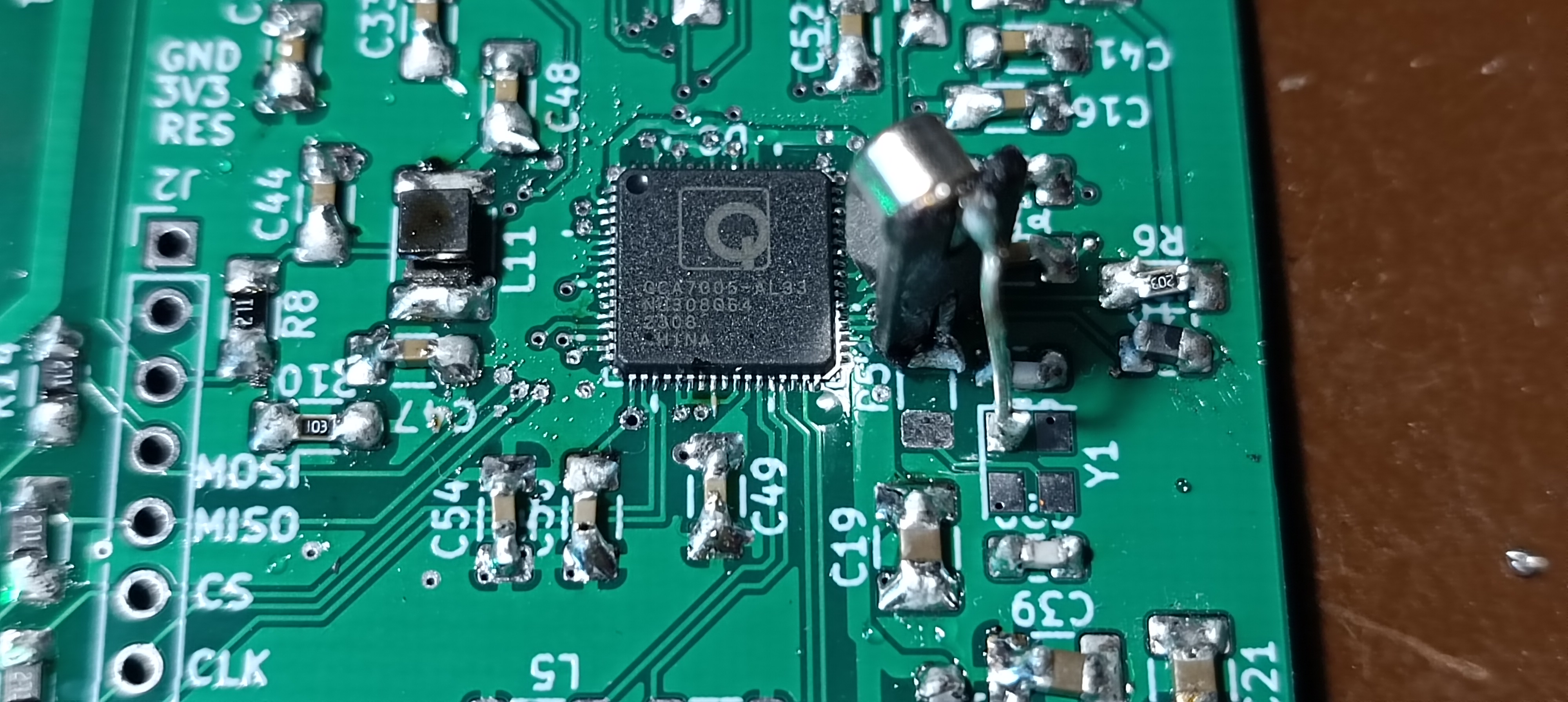 On other new I managed to populate another foccci board :) I used solder paste (extremly thin film) and heat gun for fitting the QCA. I see the version info so it seems to be mostly working. HF parts and transformer still to do.