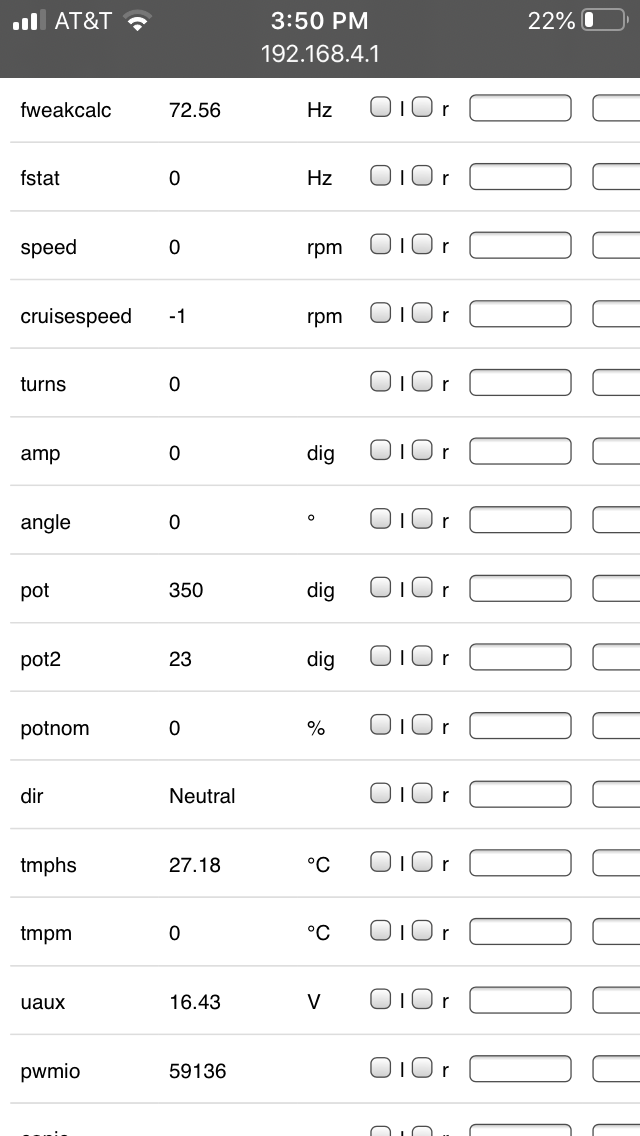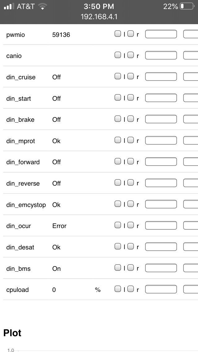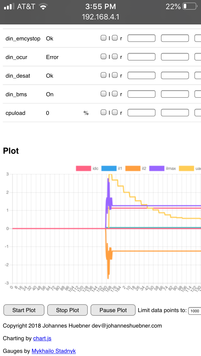 I started watching spot values and noticed potnom jumps between 0 and 9%. Tmphs jumps between 100c and 23c and tmpm jumps between 0c abs 23c. I plotted them on a graph and they jump up and down like I see them on auto refresh.