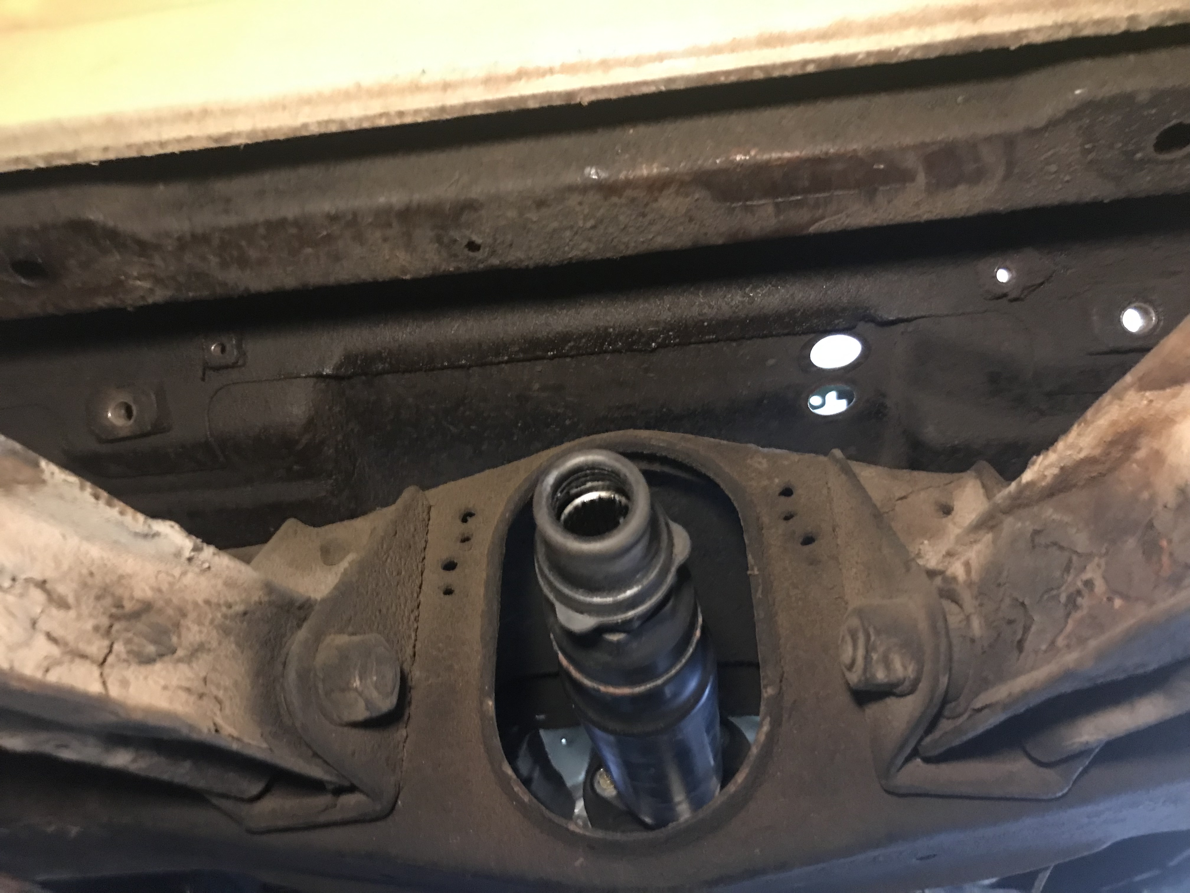 I got the stock OEM Lexus GS450h two piece drive shaft so I started to work on the middle donut support mount, I believe it's crucialistic that the short shaft is perfectly in line with the transmission