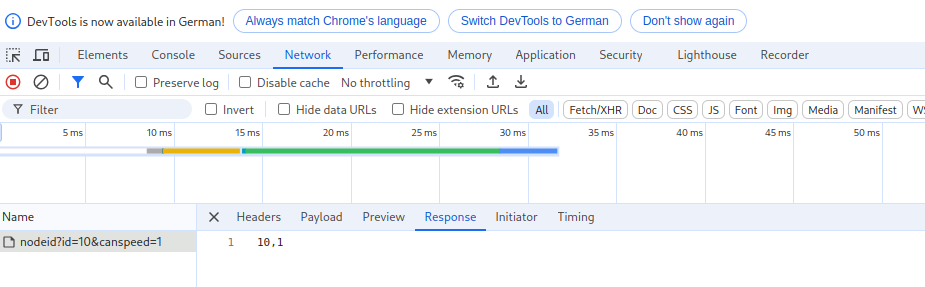 When you open dev tools (F12 in good browsers) you should see the request going out and when selecting it and viewing the response should see something like this