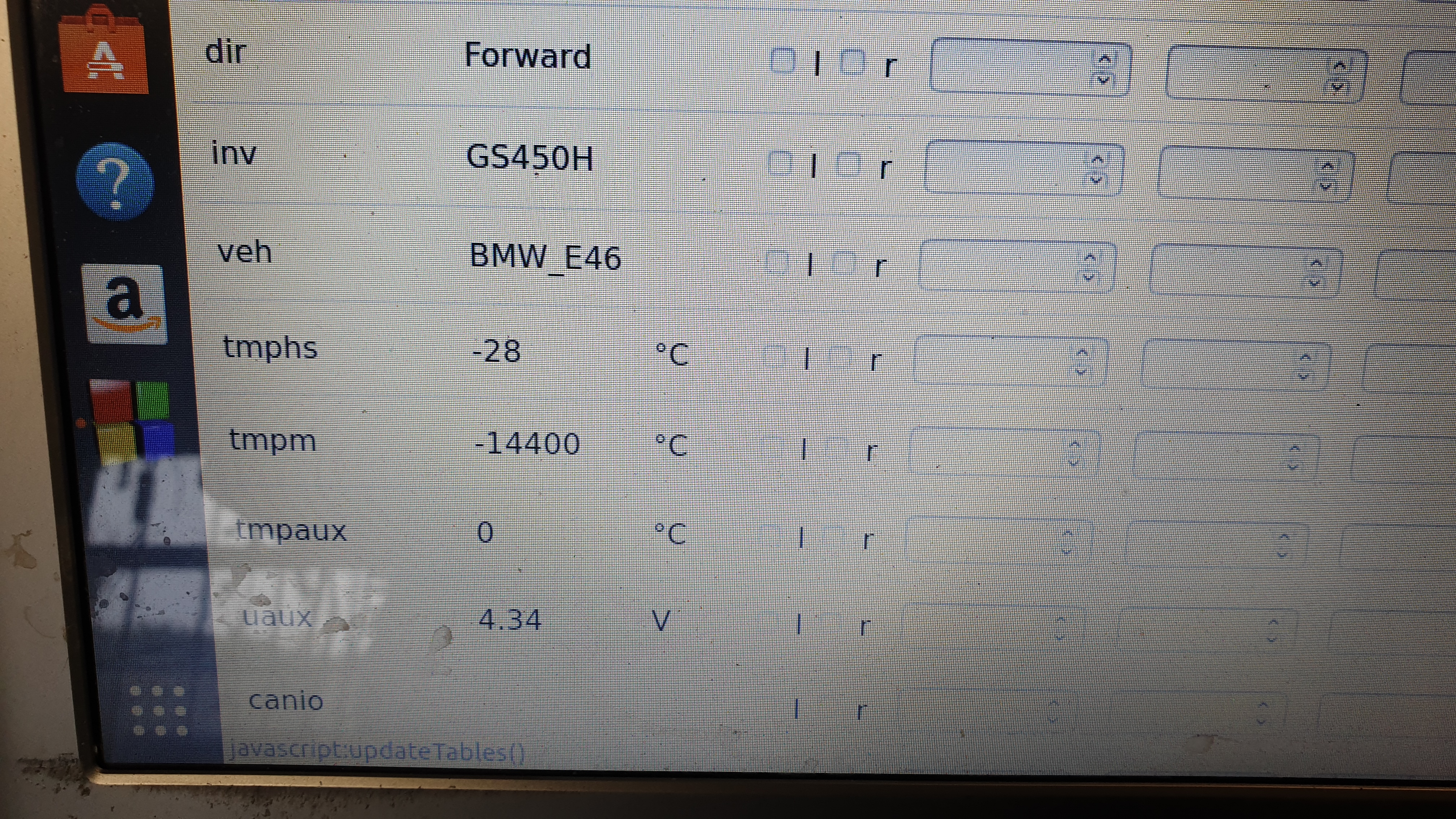 So on the E46/Leaf front we are precharging and switching and sending torque commands to the leaf inverter. Sadly its not responding as I'm sure I have screwed up the messaging somewhere along the line. Good news is we are receiving valid data from the inverter. I have pushed a few updates to the repo :