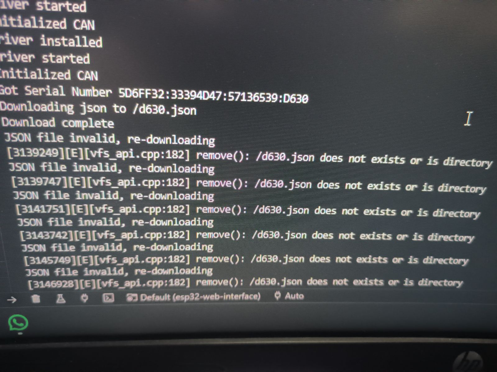 I think it is worthwhile commenting it out https://github.com/jsphuebner/esp32-web ... n.cpp#L340
