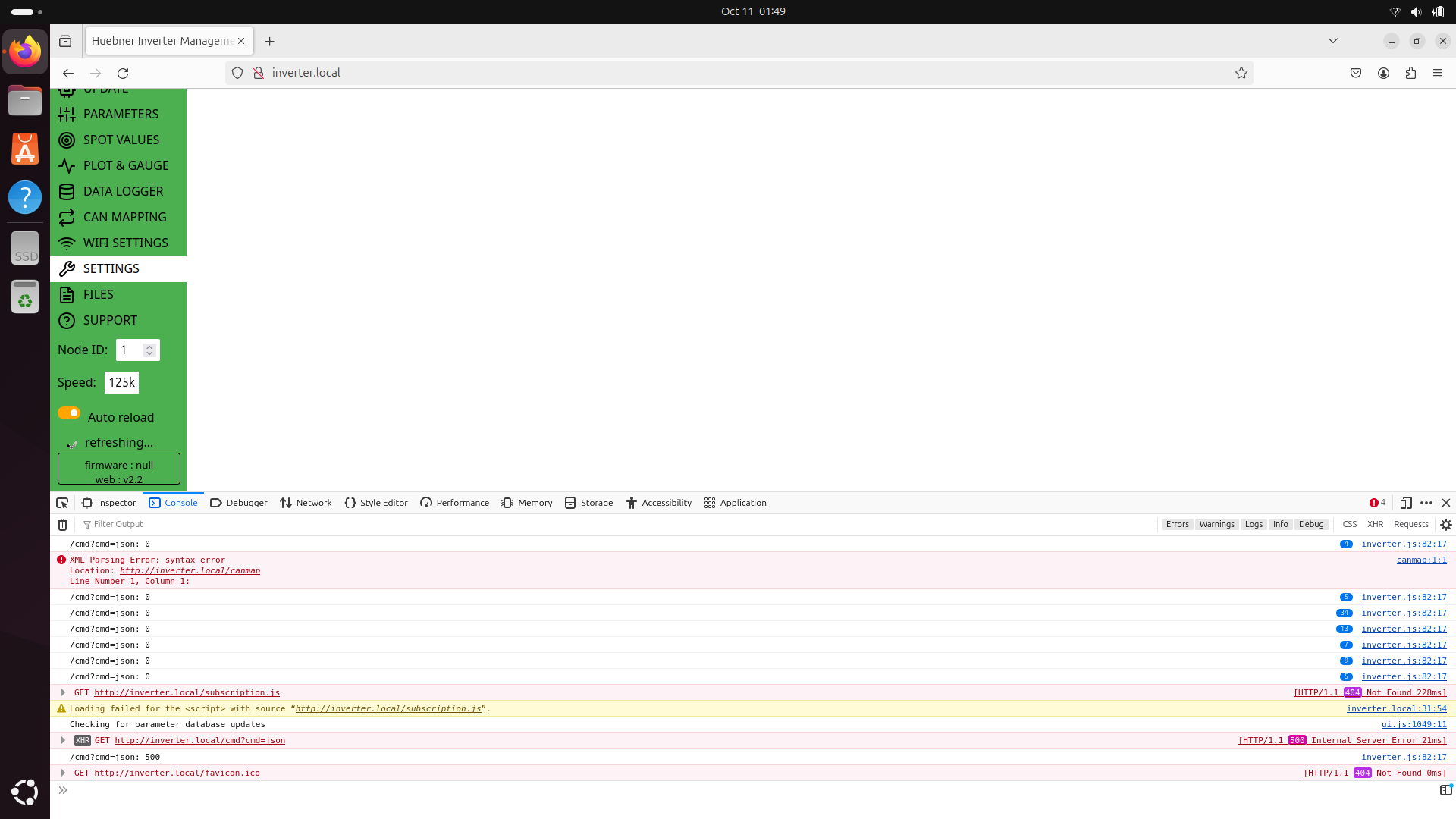 Also, trying to enter a node/speed doesn't seem to work and I can't get parameters or spot values from my Foccci (though it's freshly flashed, I cant be certain it's working right either, but I am thinking since the web UI is acting strange I should start there).
