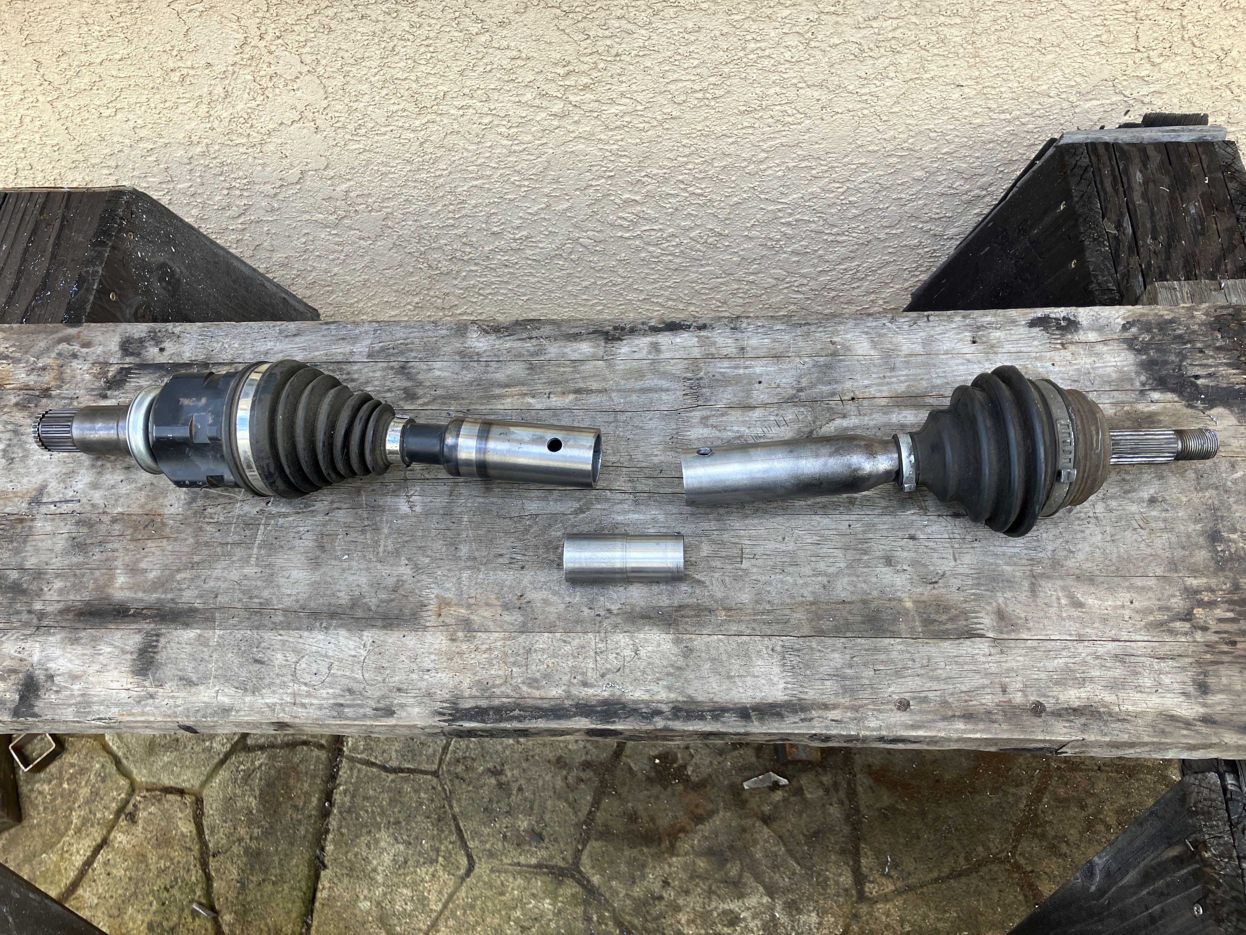 I've heard that when joining axles the wrong way, to never cut them square. You cut them at 45 degree angles. That way if the weld seam shatters, they're still forced to spin each other, where a square cut would not.