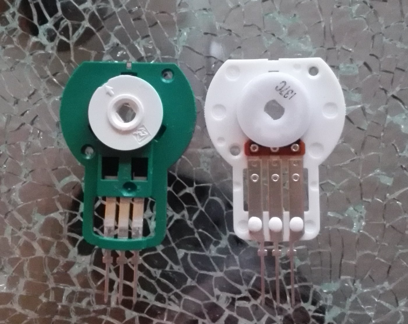 As always, the WD40 "fix" didn't last long. So after a long search I found sortof compatible feedback pots (the white one is new, green original).