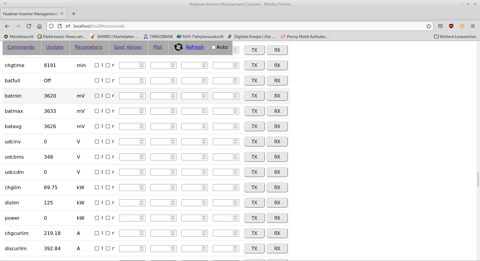 Also found a strange problem with temperature derating. Basically during fast charging the average cell temperature was displayed as 38°C. Then, when I took off it was still 38°C but suddenly jumped to 57°C. This resulted in a power derating to 33 kW. I'm pretty sure this is not representing the actual temperature because it wasn't overheating last summer (35°C outside temp) and also a hot battery pack can be felt through the rear seat carpet. I'm transmitting the outside temperature to the BMS and during charging the sensor is not powered and consequently I report 0°C. Maybe the BMS is then surprised by the sudden jump and does some sort of "correction". Maybe I should just transmit a constant value.