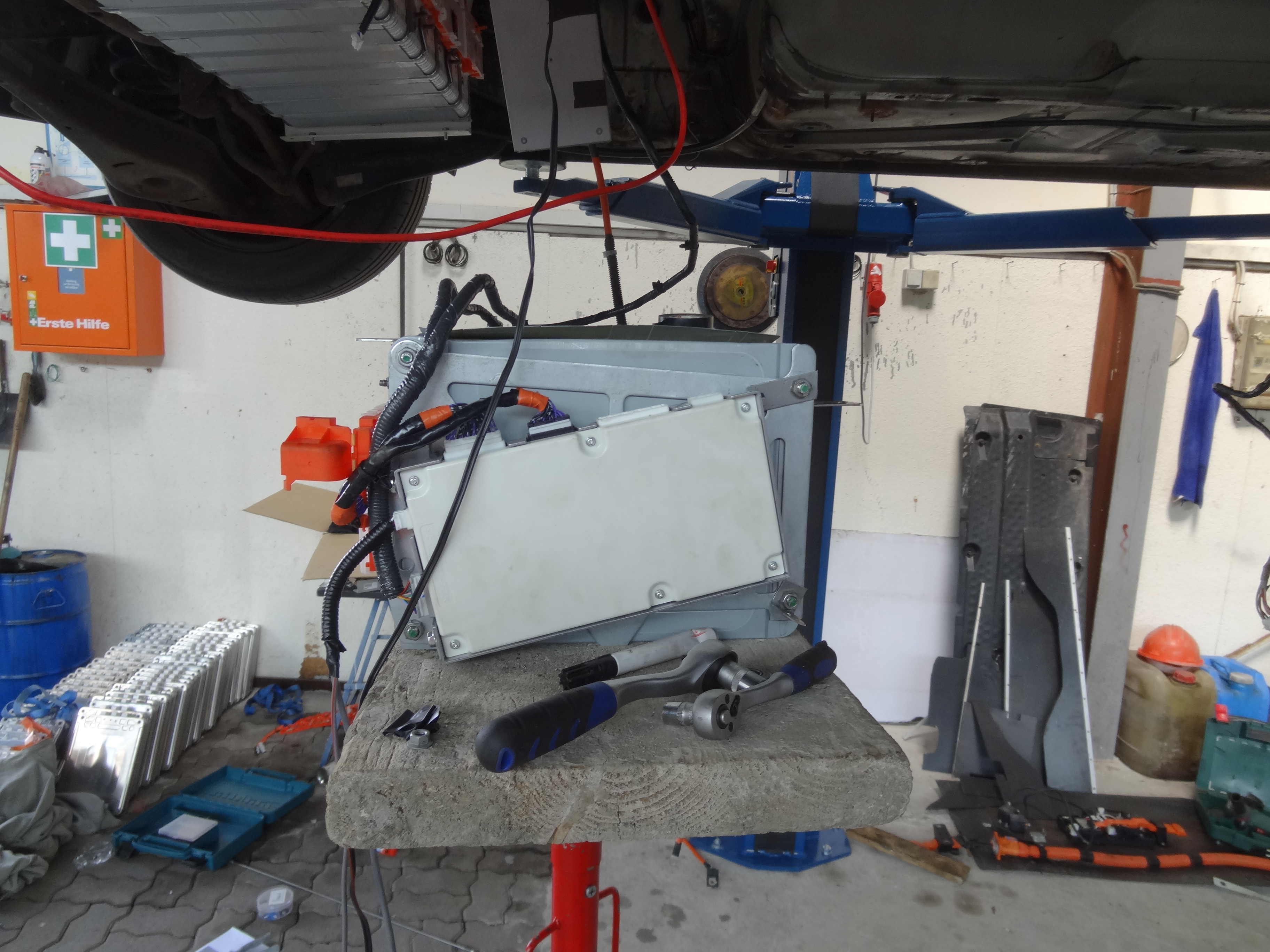 First day in the workshop today. We removed the 24 kWh battery and disassembled it. Unfortunately one pole broke but I think the electric connection is still ok.