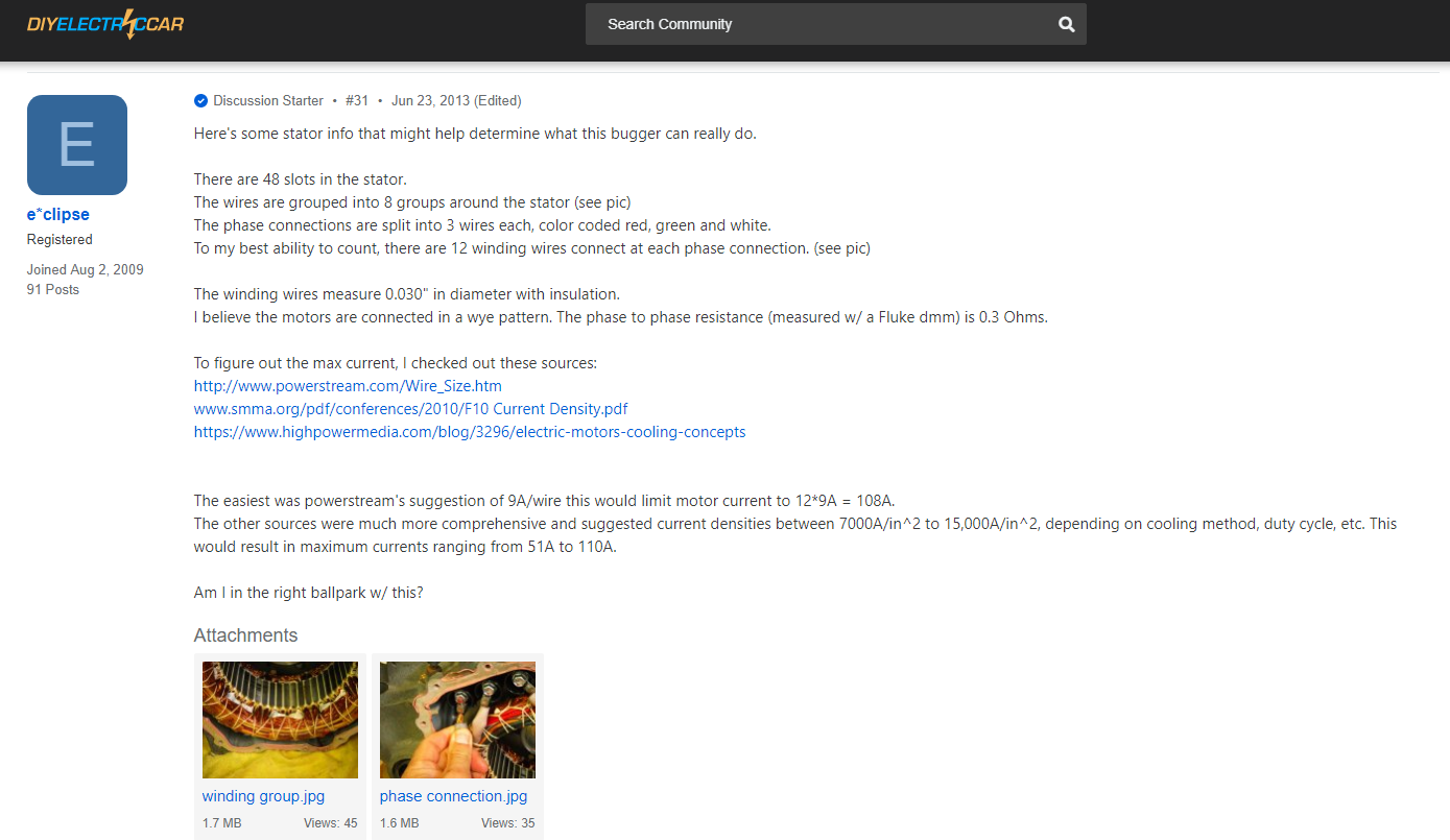 So some guy measures the wire diameter, uses an online calculator designed for power distribution and bingo we have a max motor current. Oh and even better it fits in perfectly with the 650v "fact". Sweet. What could possibly be wrong.