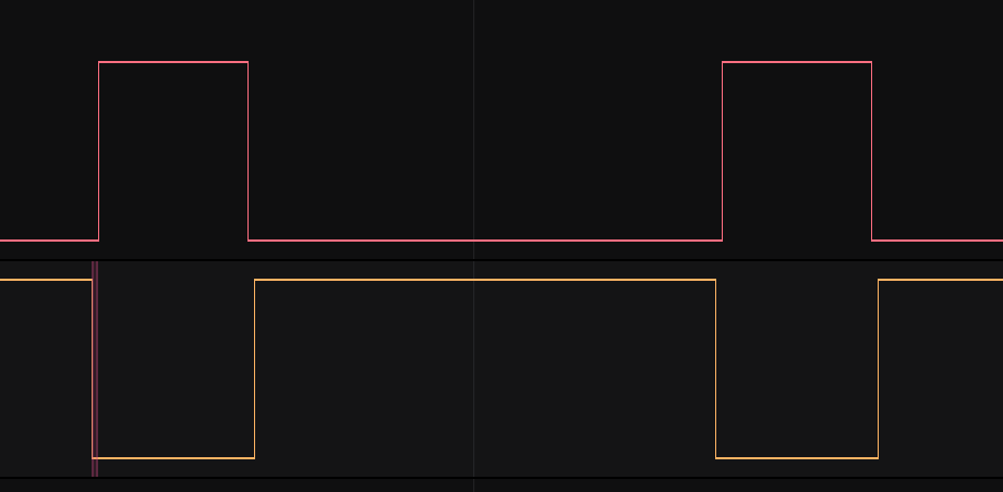 red is IN- (up), orange is IN+ (underneath). Duty cycle 25%.