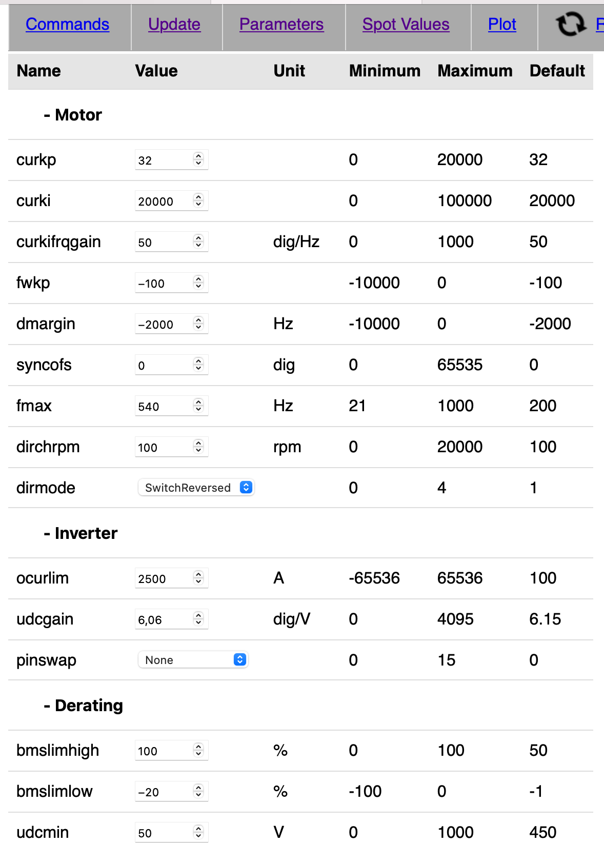 Motor Params here: