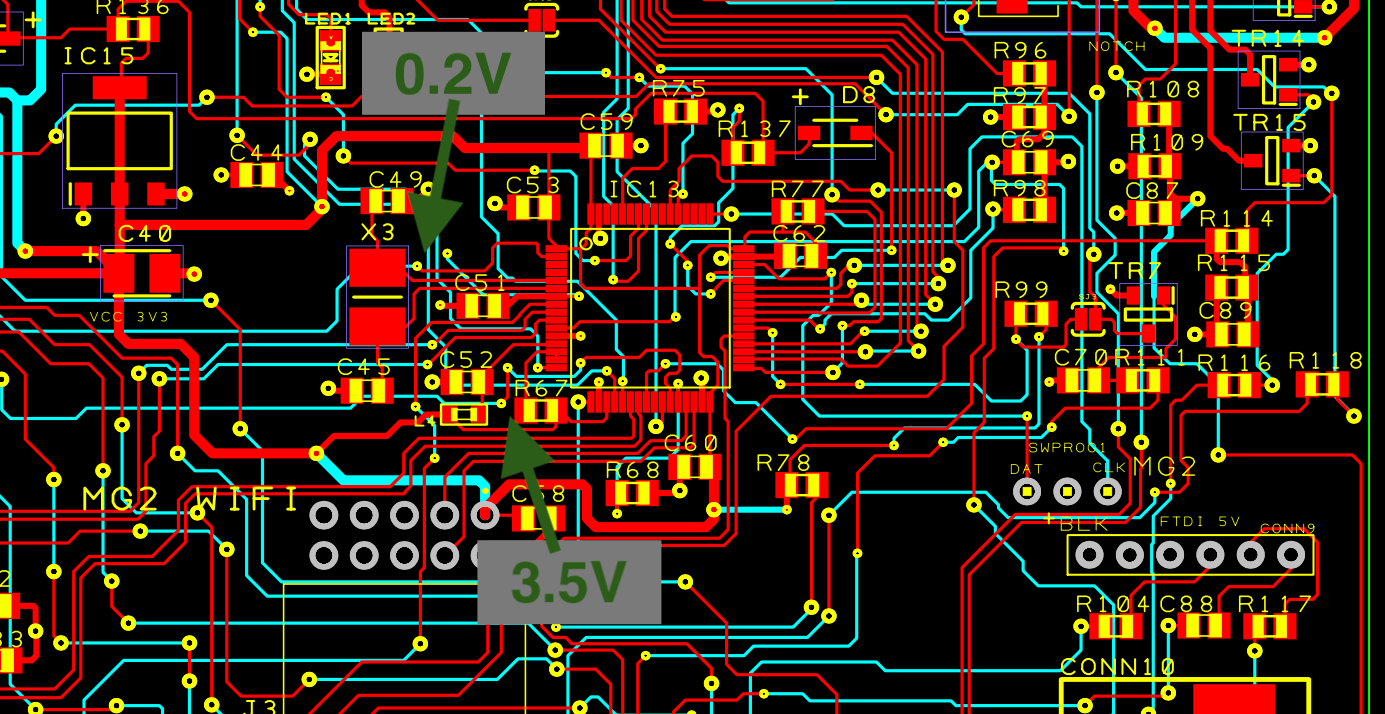 Look at the 2nd pin of MG2 IC for some solder joints -it could be shorted there.