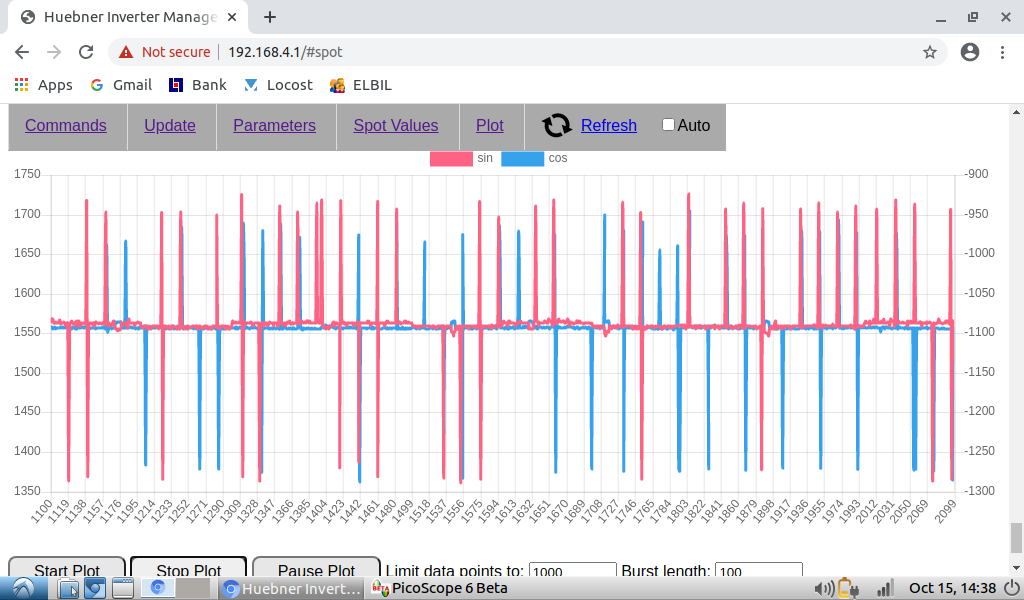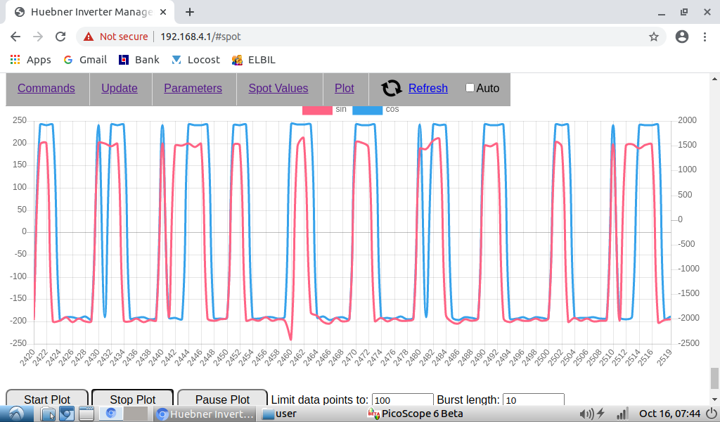 Also the motor position is at about 348 degree when doing this measurement to get a nice large amplitude on the cos signal and also the signal to be close to in phase with the exciter signal.
