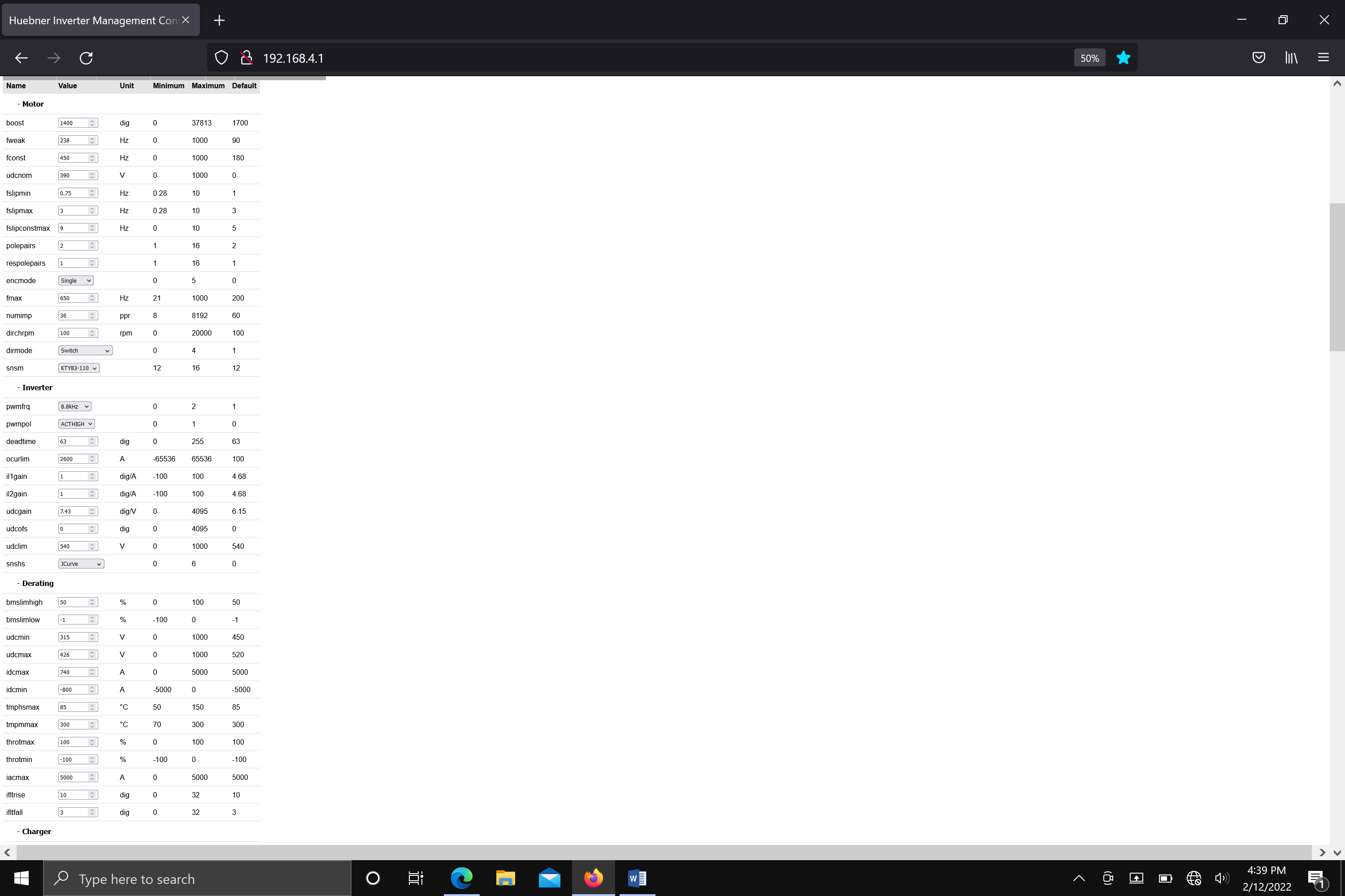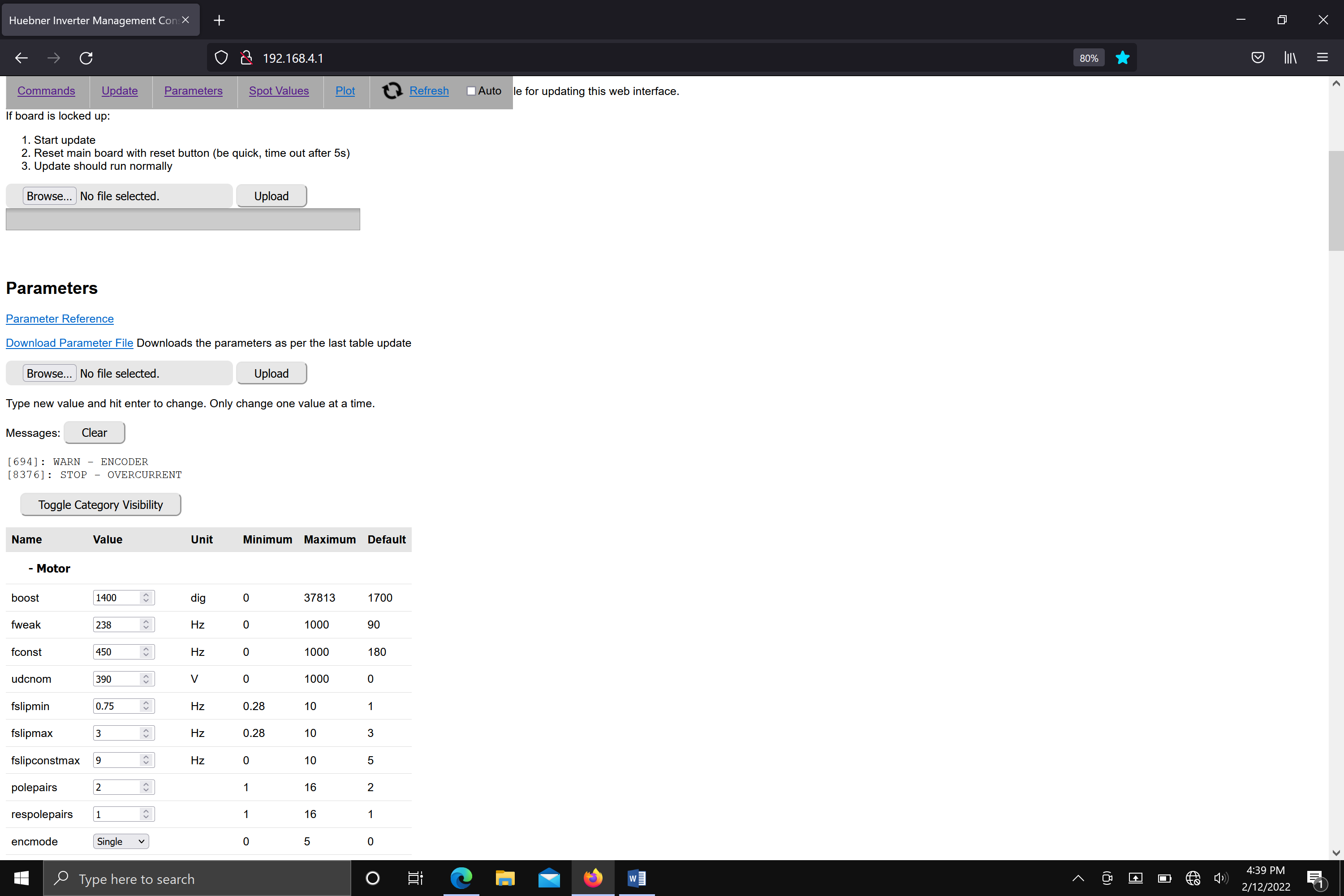My current parameters, using 4.97, are attached. This works, but the car is way down on power from where I started. EDIT: Fweak is lower than other sets because I was attempting to regain performance. Lowering was not tripping an overcurrent.