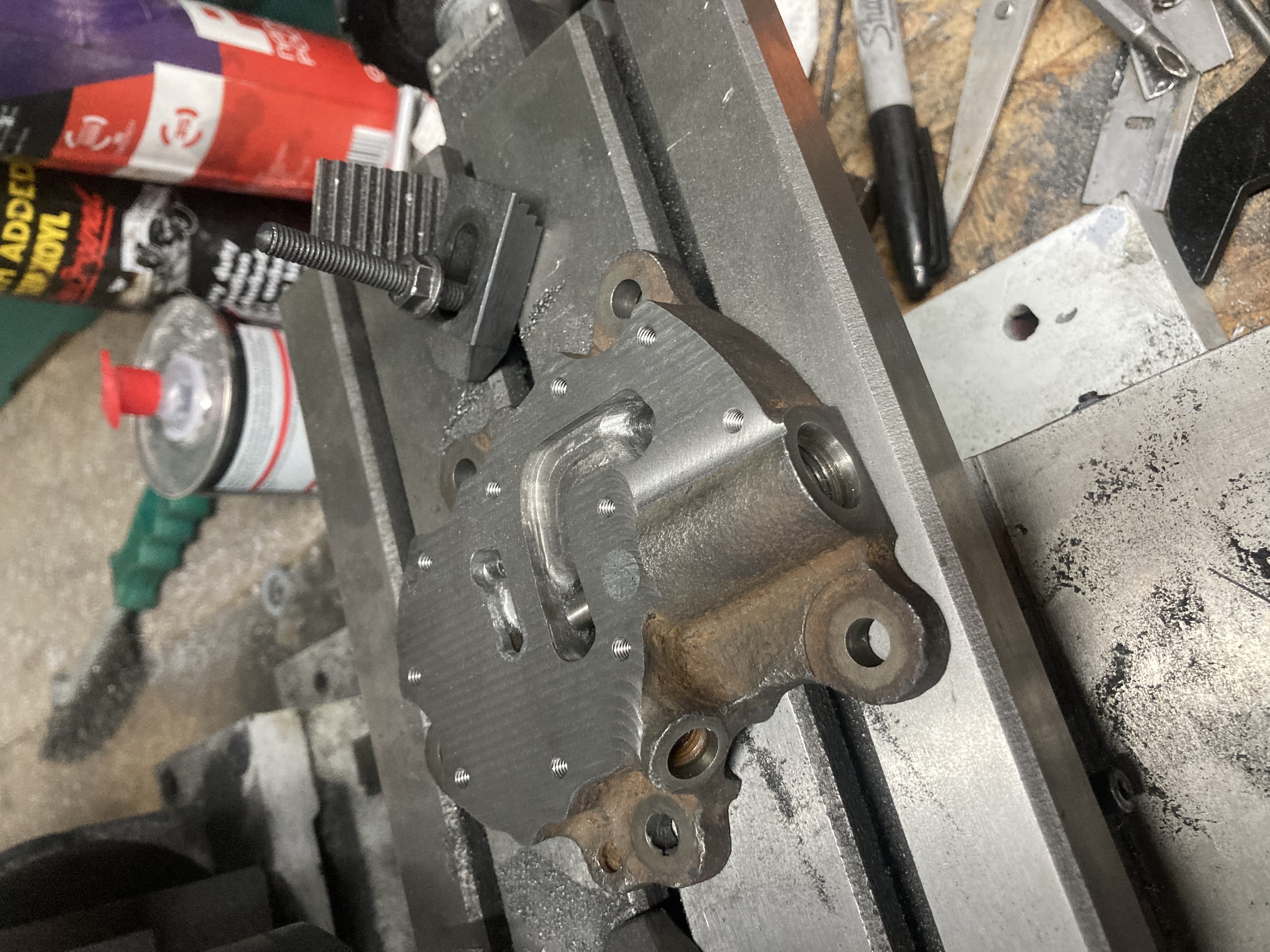 I few bits here to finish up and then I’ll move onto the next job to put off actually putting the 2 gen2 controller boards in 1 housing and wire it all up instead I’m going to revisit the motor oil pump, I was going to use an external electric pump as the original pump spins the wrong way, but now I’m looking at tue spare pump I have here and thinking I may have a go at re arranging the port configuration.