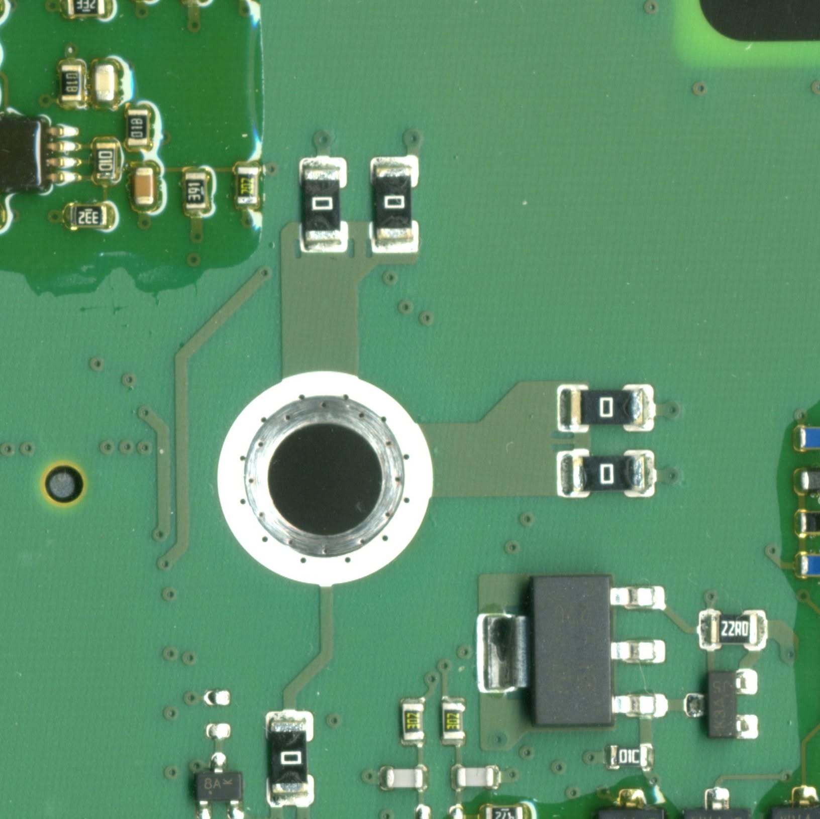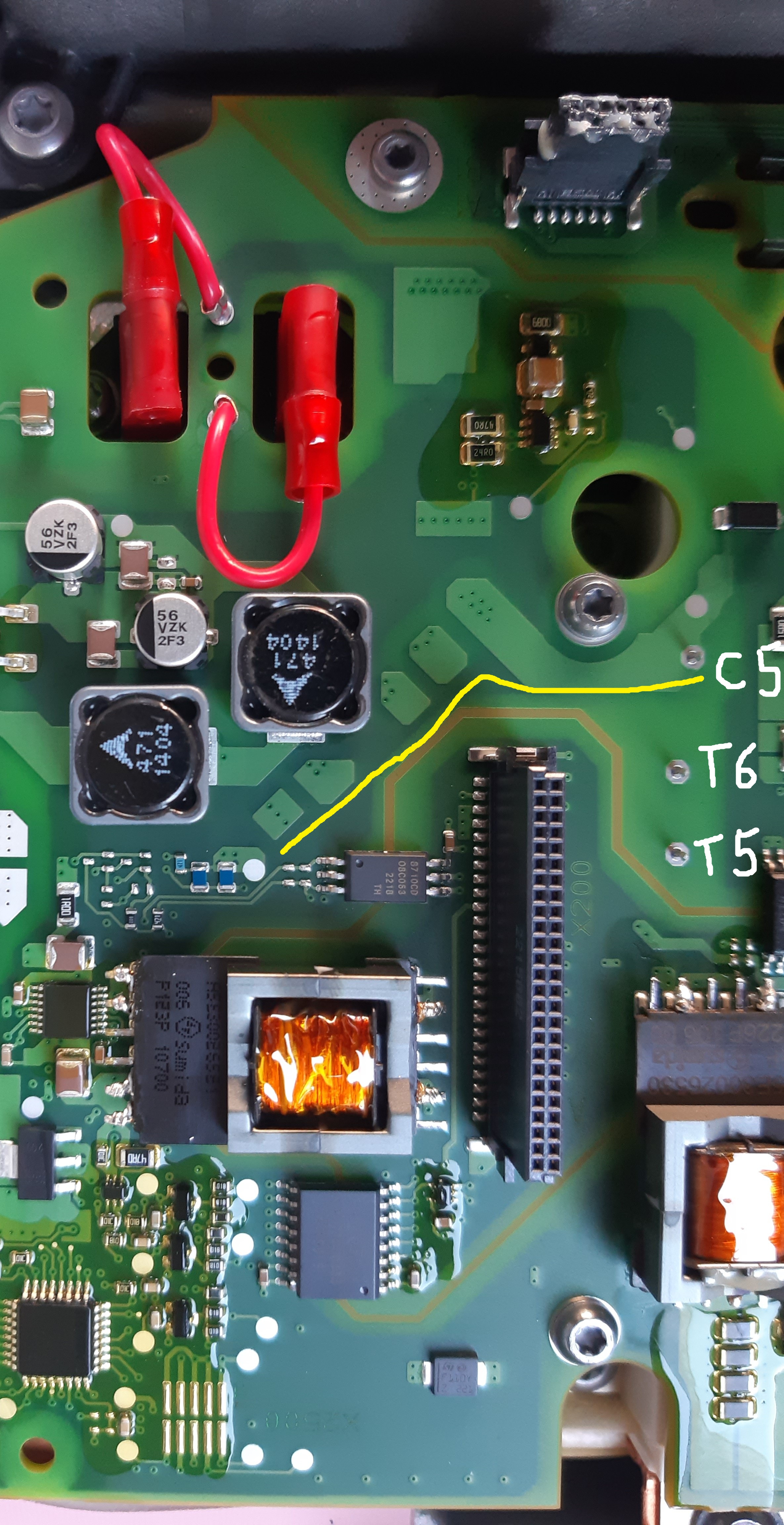 From C5 (W phase) of the IGBT-pack are also 5 resistors on the bottom side in line connected at the 8710CD. The output pin of the 8710CD connected at A16.