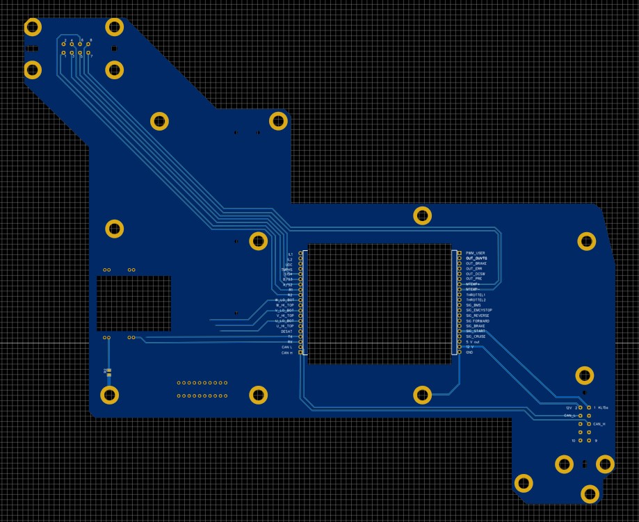 This is the view on top. And this is the bottom side. This is the connector to the resolver. This is the connector to the vehicle. At this post you can see the pinout https://openinverter.org/forum/viewtopi ... 321#p54321.