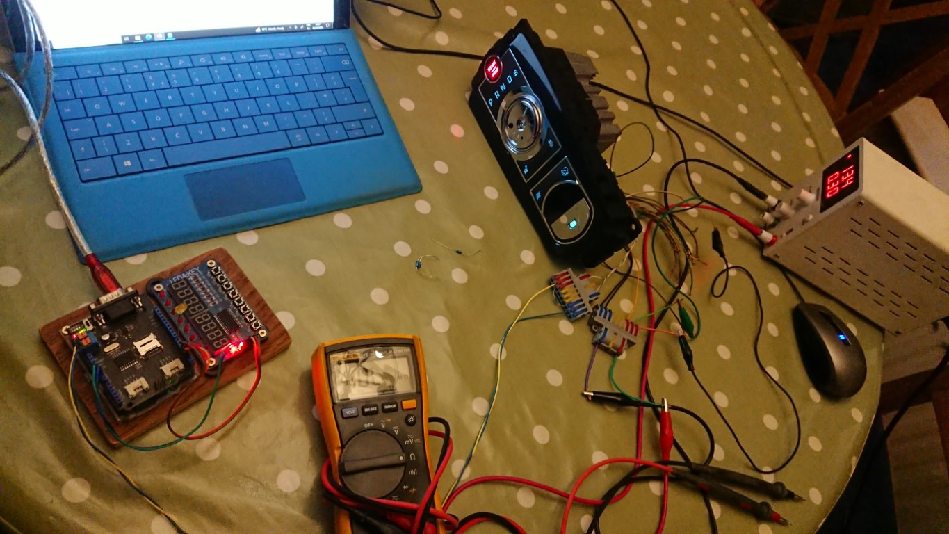 Hope this can help a bit. I tested both the new Gen1 and Gen2 sketches on my unit. So like VanGogh, neither is getting any action from the selector. However, from previously running some of Tom's CAN logs from Savvycan, the knob did raise but wouldn't retract. When Gen1 sketch started running, the knob did retract but wouldn't move after that. Connections as per Tom's post above, add/remove ignition brings on the back lights etc.