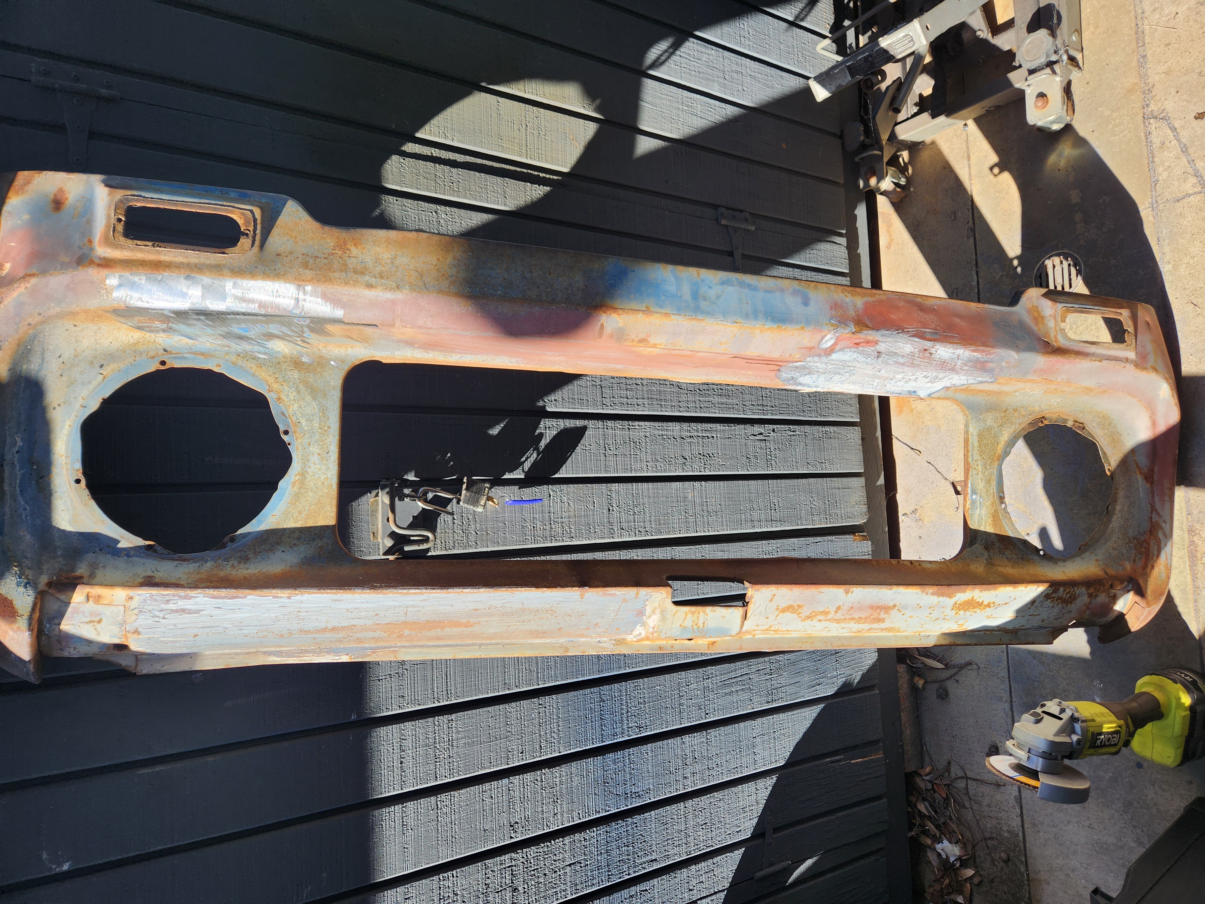 I finally decided to just get my body panels sand blasted. I was messing around with sanding, grinding, wire wheeling and rust converting and it's messy and slow. I sent off the front grill section, hood and front fenders. Doors and rear sections can come later. I started panel beating some dings, and this old girl has quite a bit of filler in places, but will wait until blasted before doing any more and I think it will be a more pleasant experience