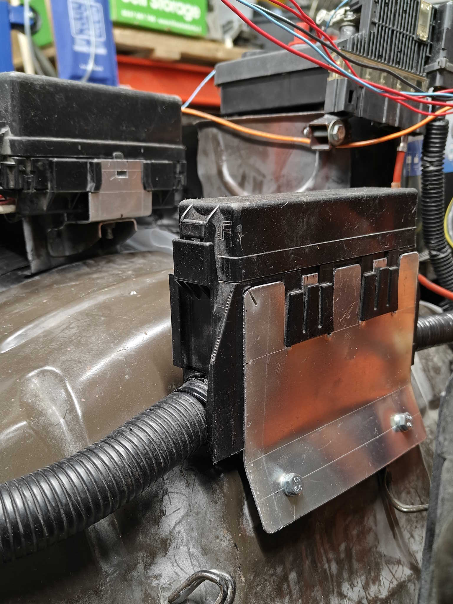 Cleaned up the main fuse box and pulled out a few meters of copper. Then made some mounts (brackets).