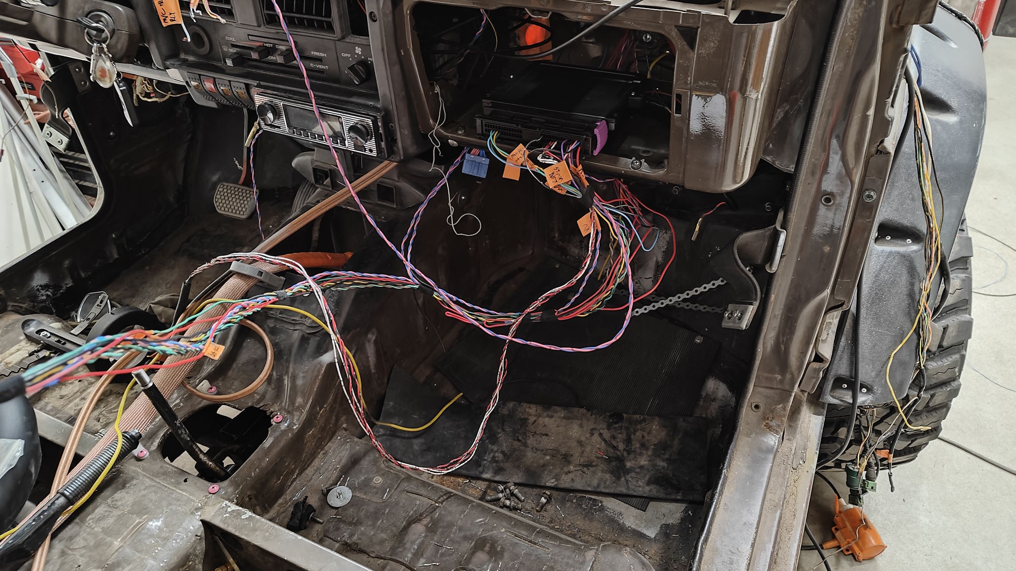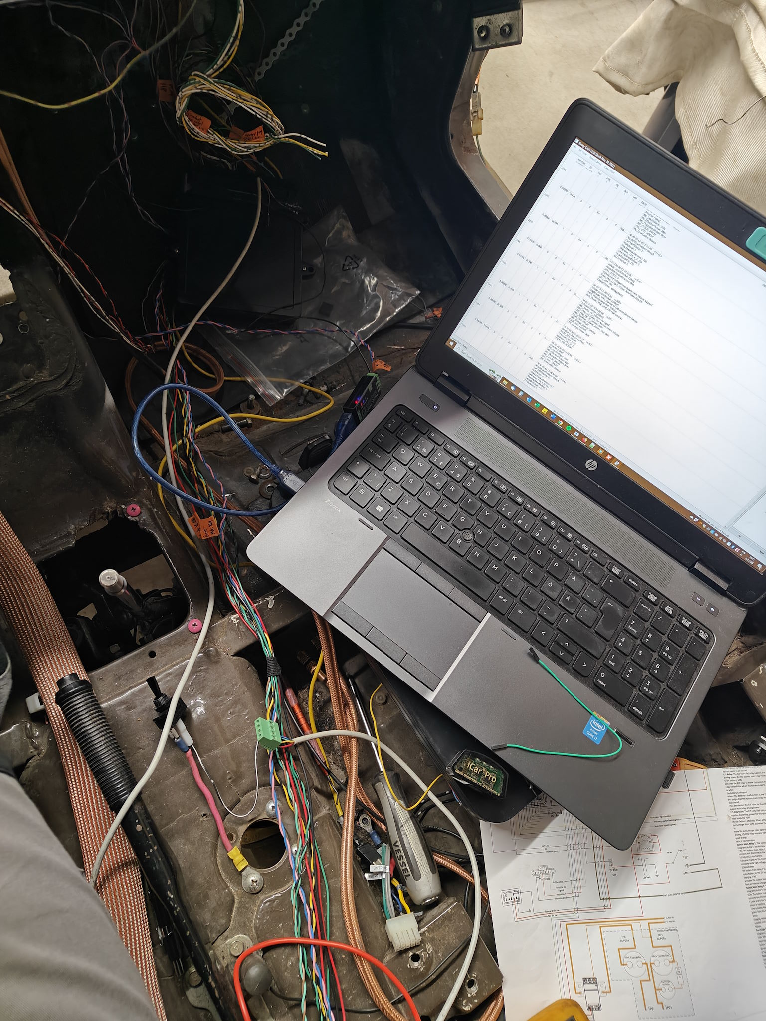 Taming the spaghetti has proceeded as expected and there are very few on the "get back to this later" -list Zombieverter will find its new home under the glovebox, similarly to the ICE ECU I had mounted there. That way I don't have to "recalibrate" my max water level