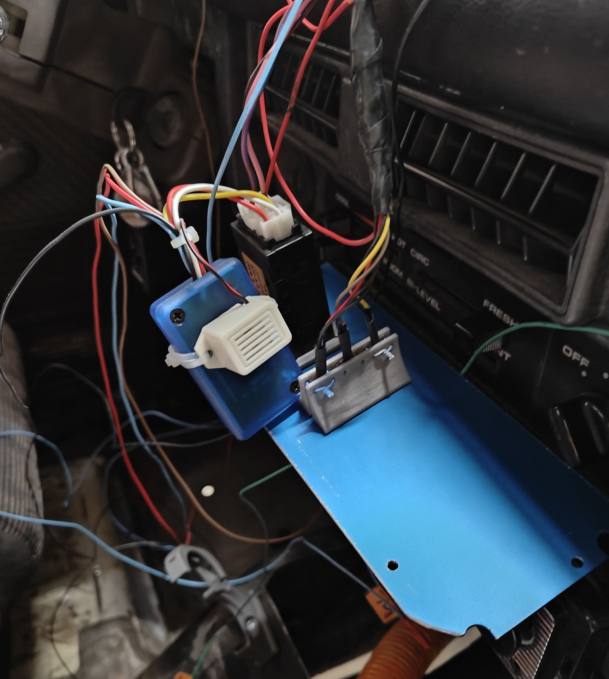 One of the vehicle modification requirements in Finland for a car this old is that the vehicle indicated to the driver if it is in an active driving state when the drivers' door is ajar. I was first adding a signal lamp, but then I figured a buzzer is actually useful for me too.