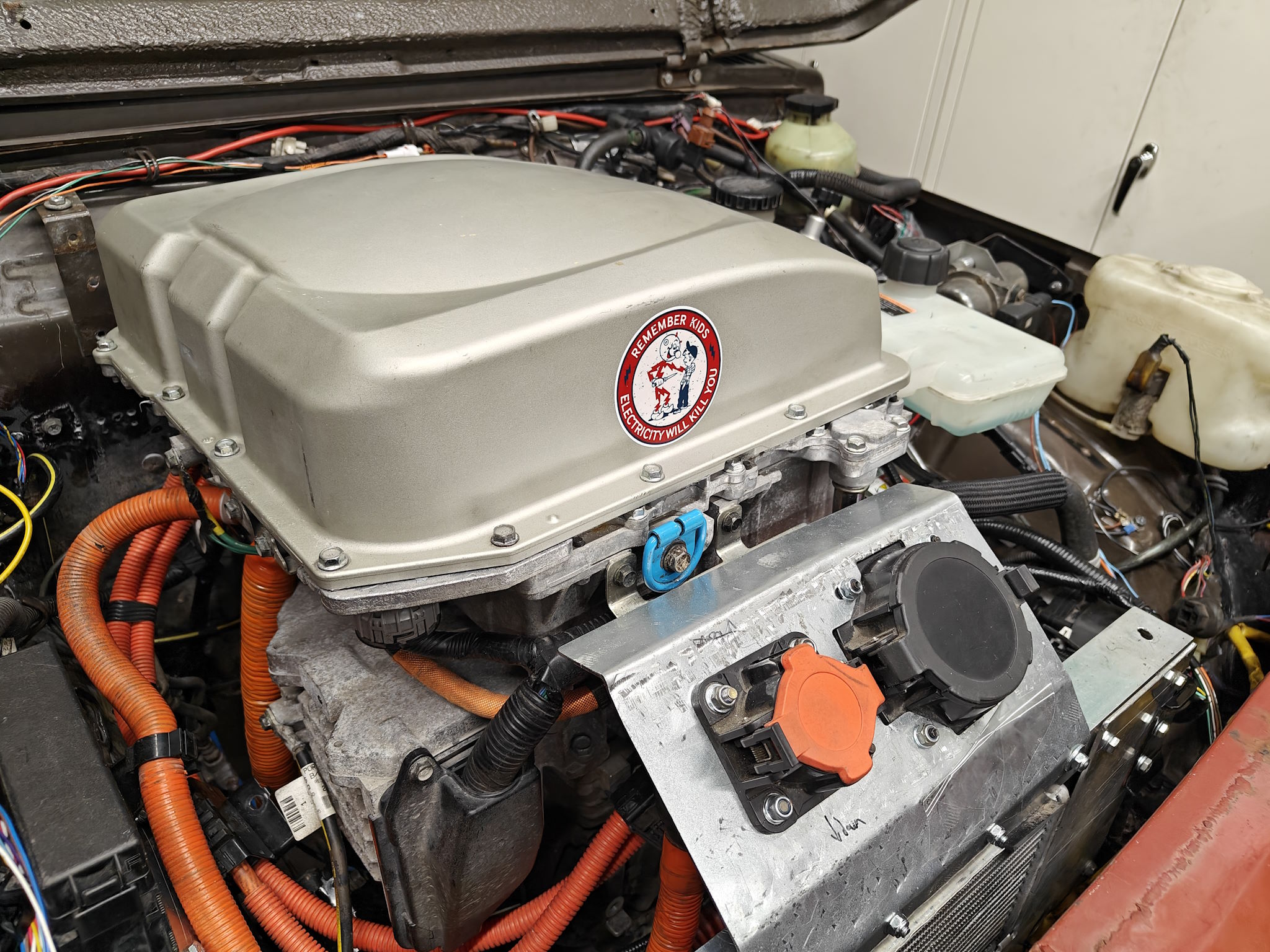 Spliced the VW heater interlock to Leaf engine harness interlock circuit. The plan is to connect this as part the Inverter pover relay control circuit. So circuit open --> no inverter power.