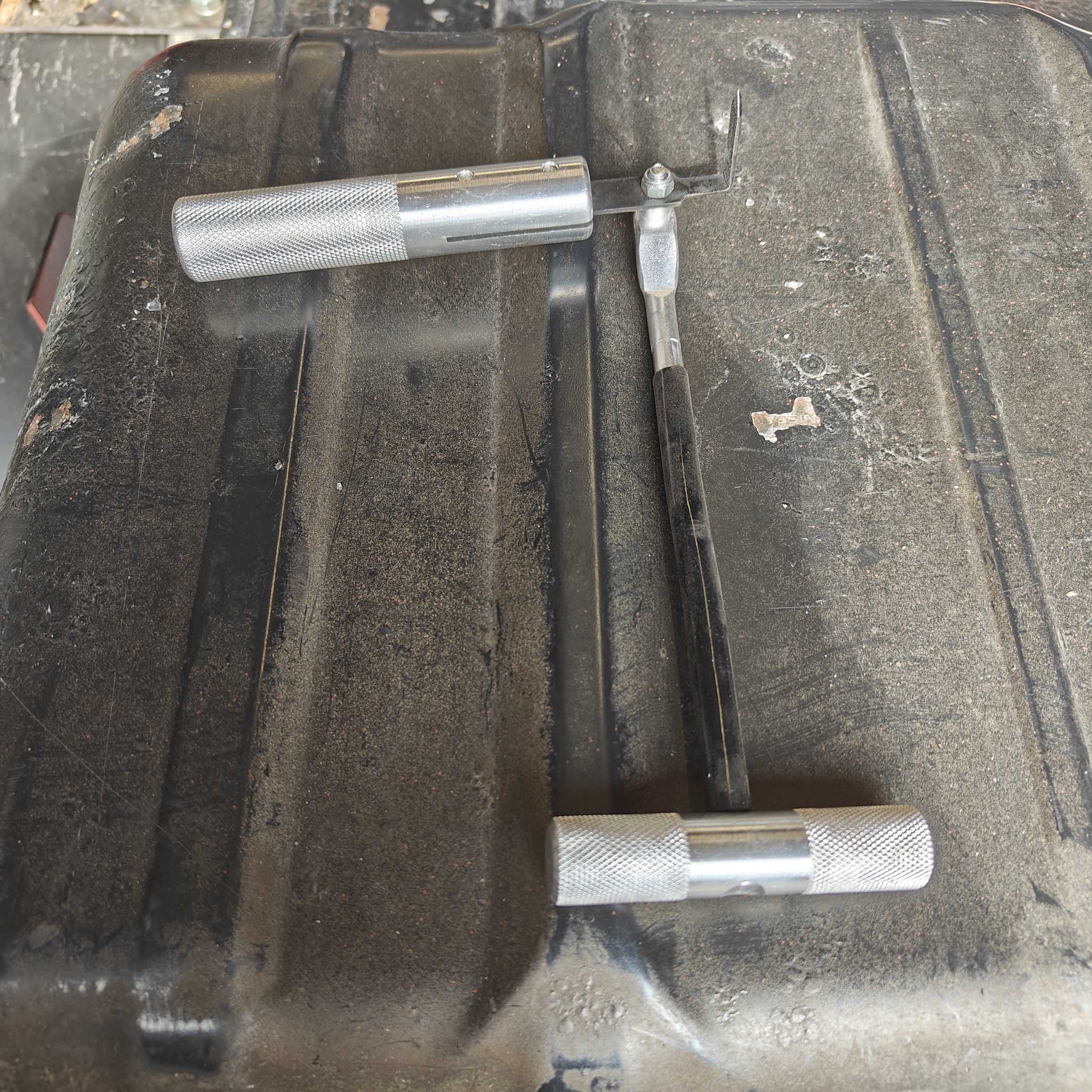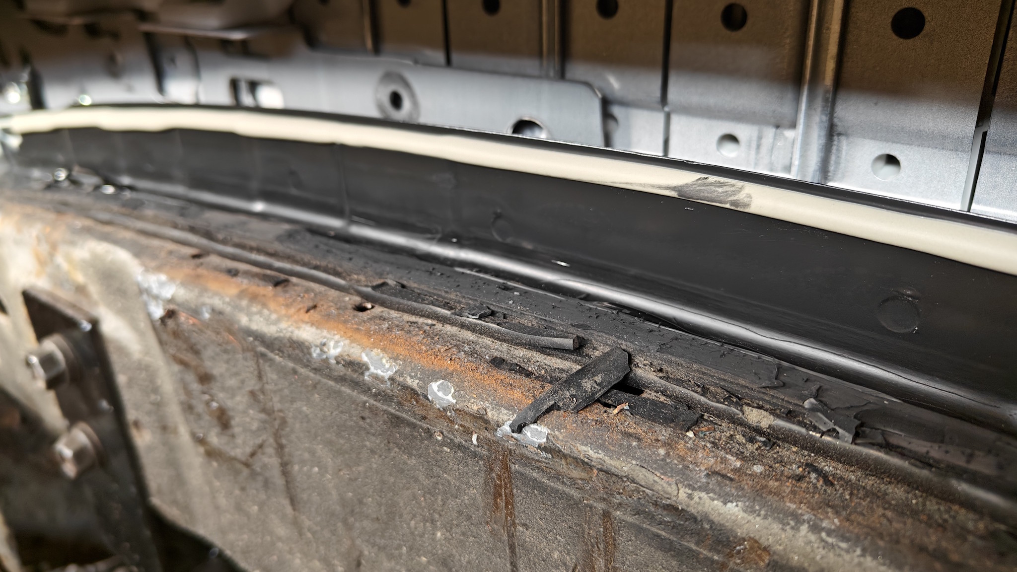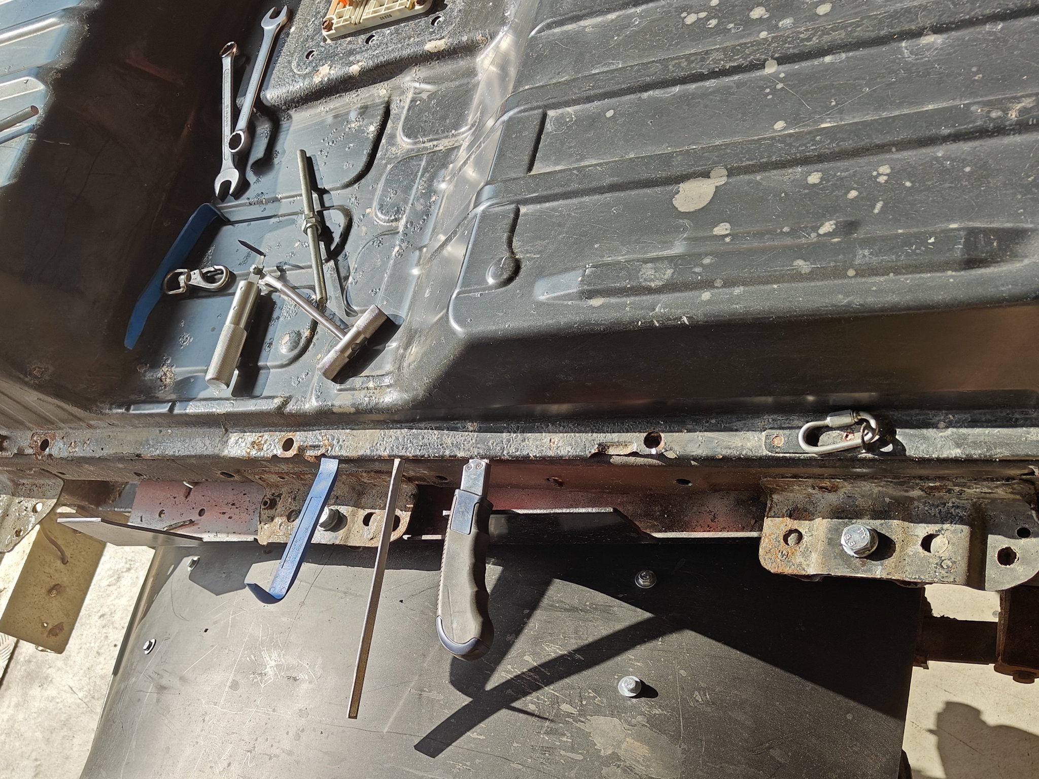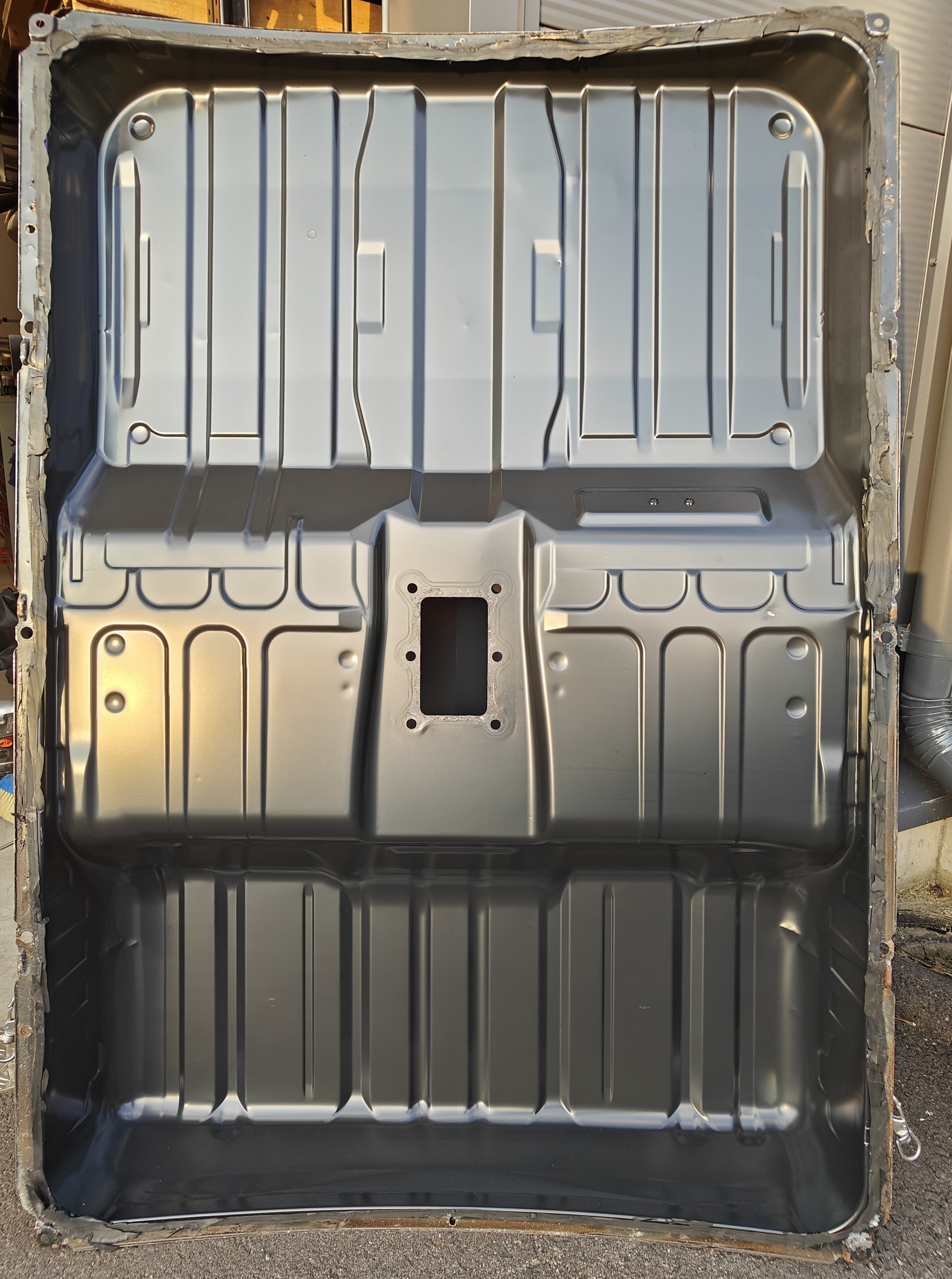 Cleaned up the cover and battery box body. Prepped with rust primer and cleaned the glue residue Didn't have the dam rubber or similar at hand, so opening will be paiful also next time...