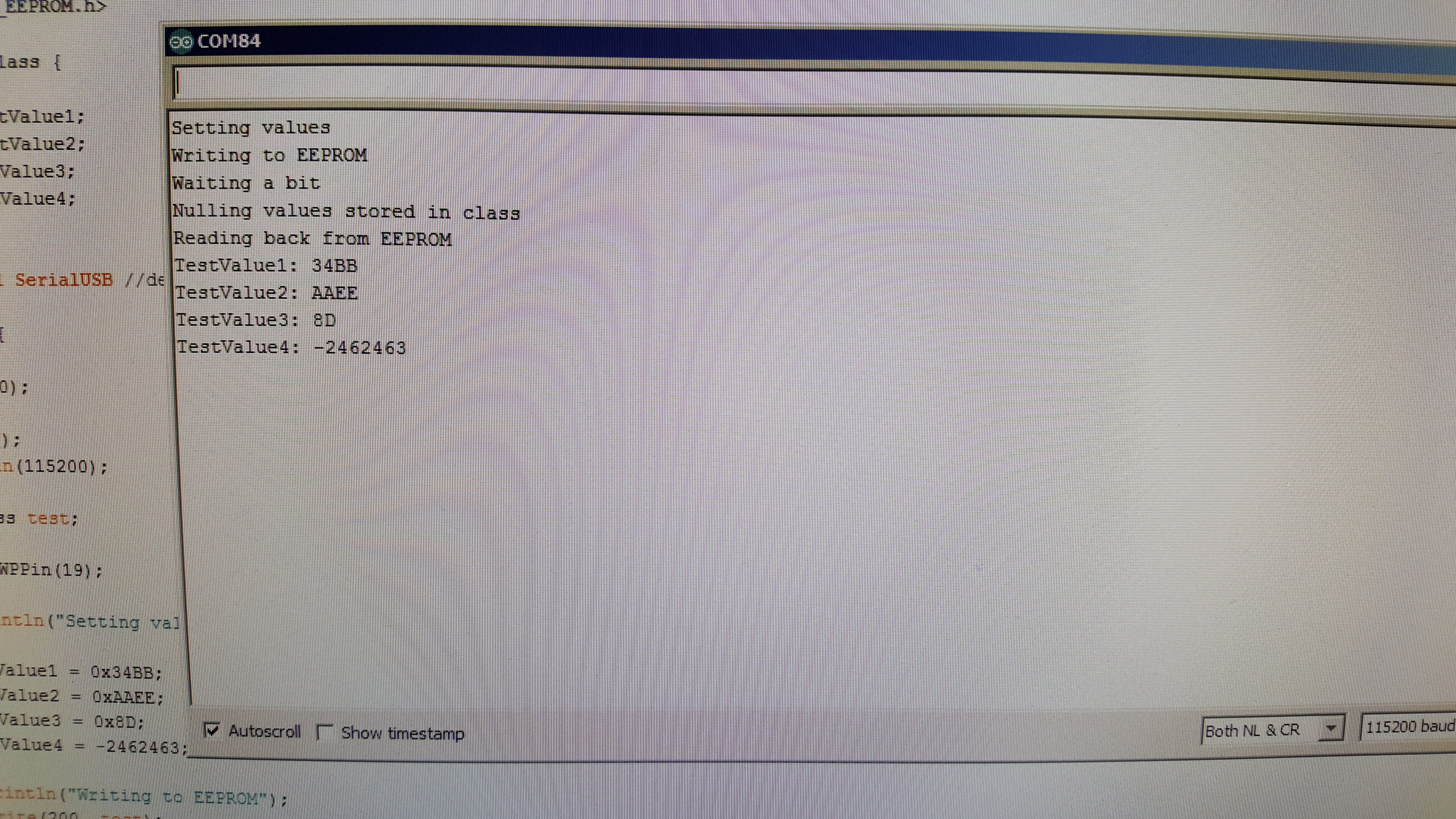 I assume you've verified that the EEPROM on the VCU works in general? If not, try one of the Wire_EEPROM examples (https://github.com/collin80/Wire_EEPROM)