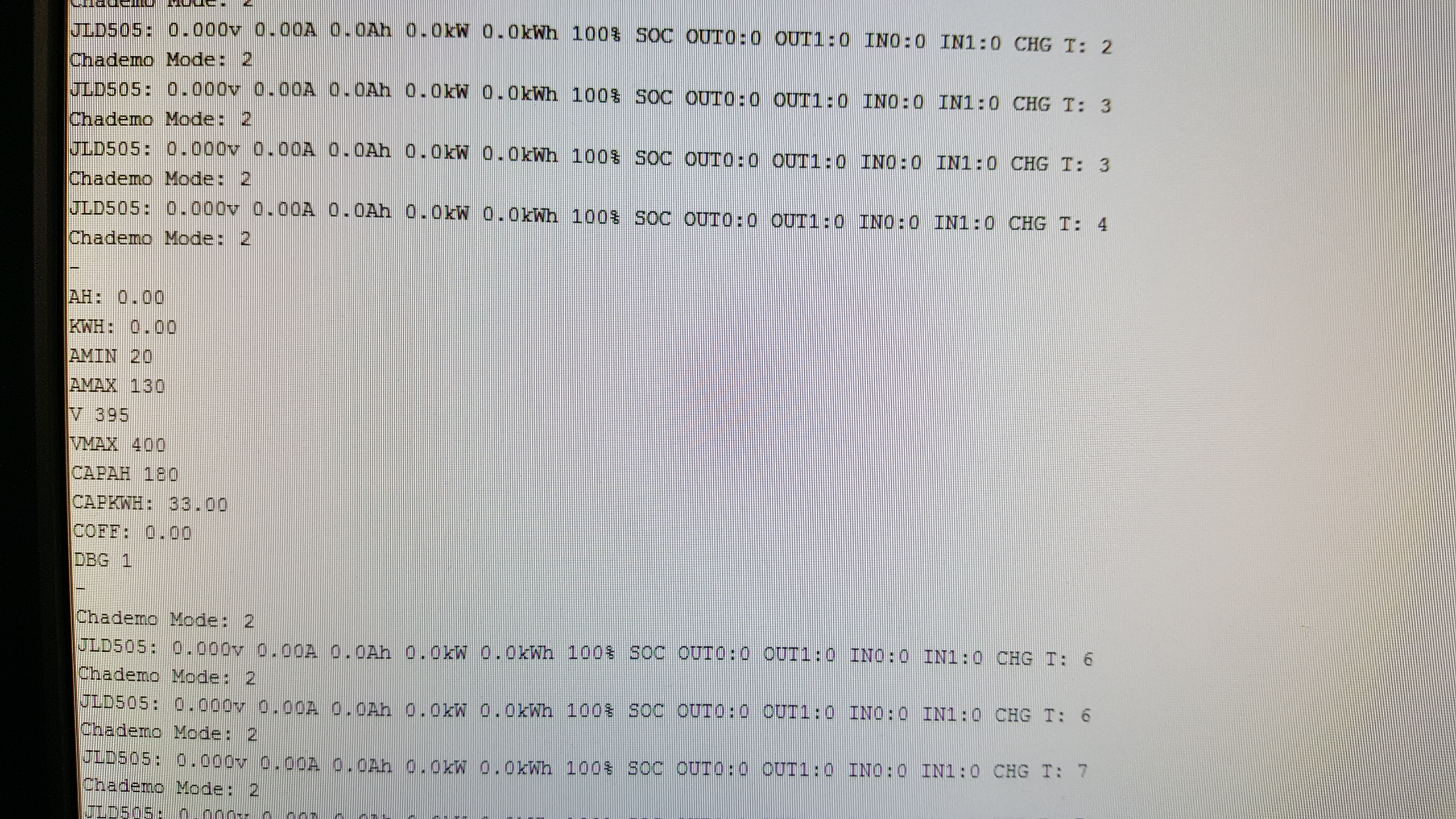 1- Had to comment out this line as it was spamming the serial monitor : // SerialUSB.println("Chademo looped");