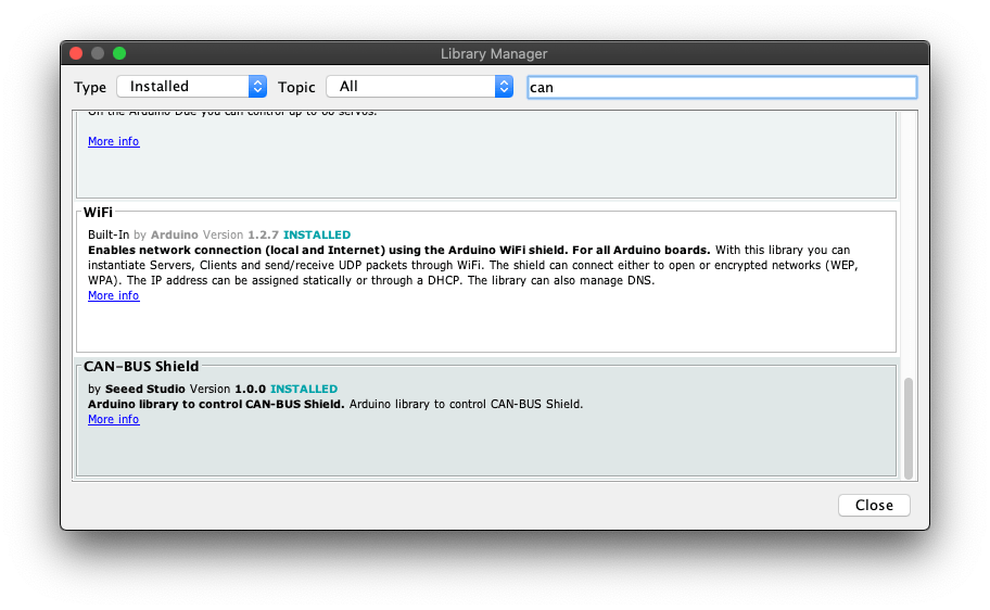 dima wrote: Fri Feb 28, 2020 4:18 pm Yes all required libraries must be installed. I use CAN-BUS Shield by Speed Studio.
