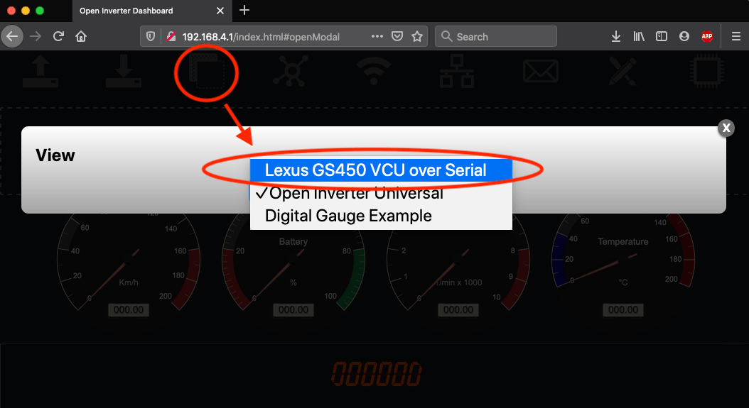Once loaded you will need to switch the view (default is Open Inverter).