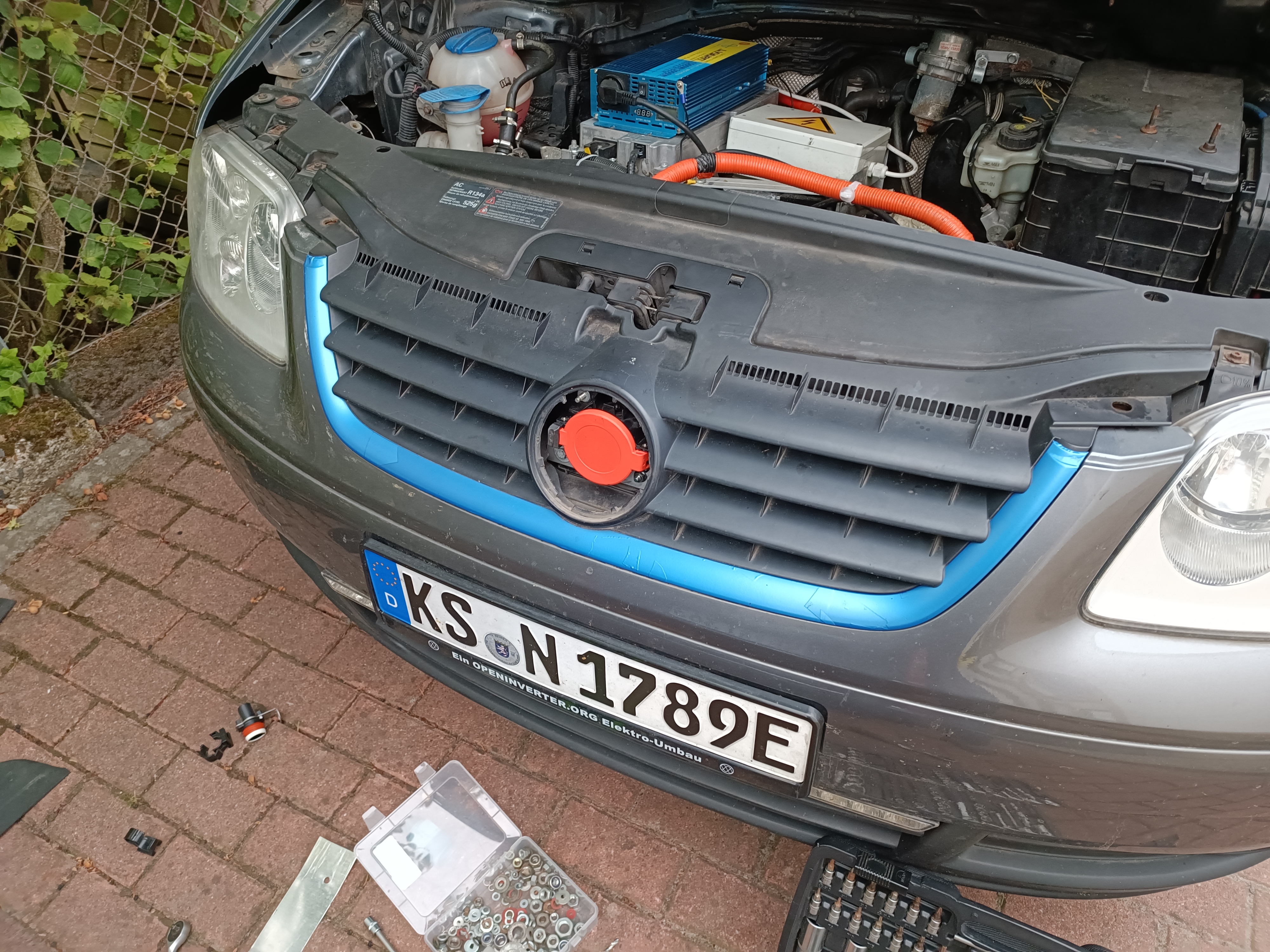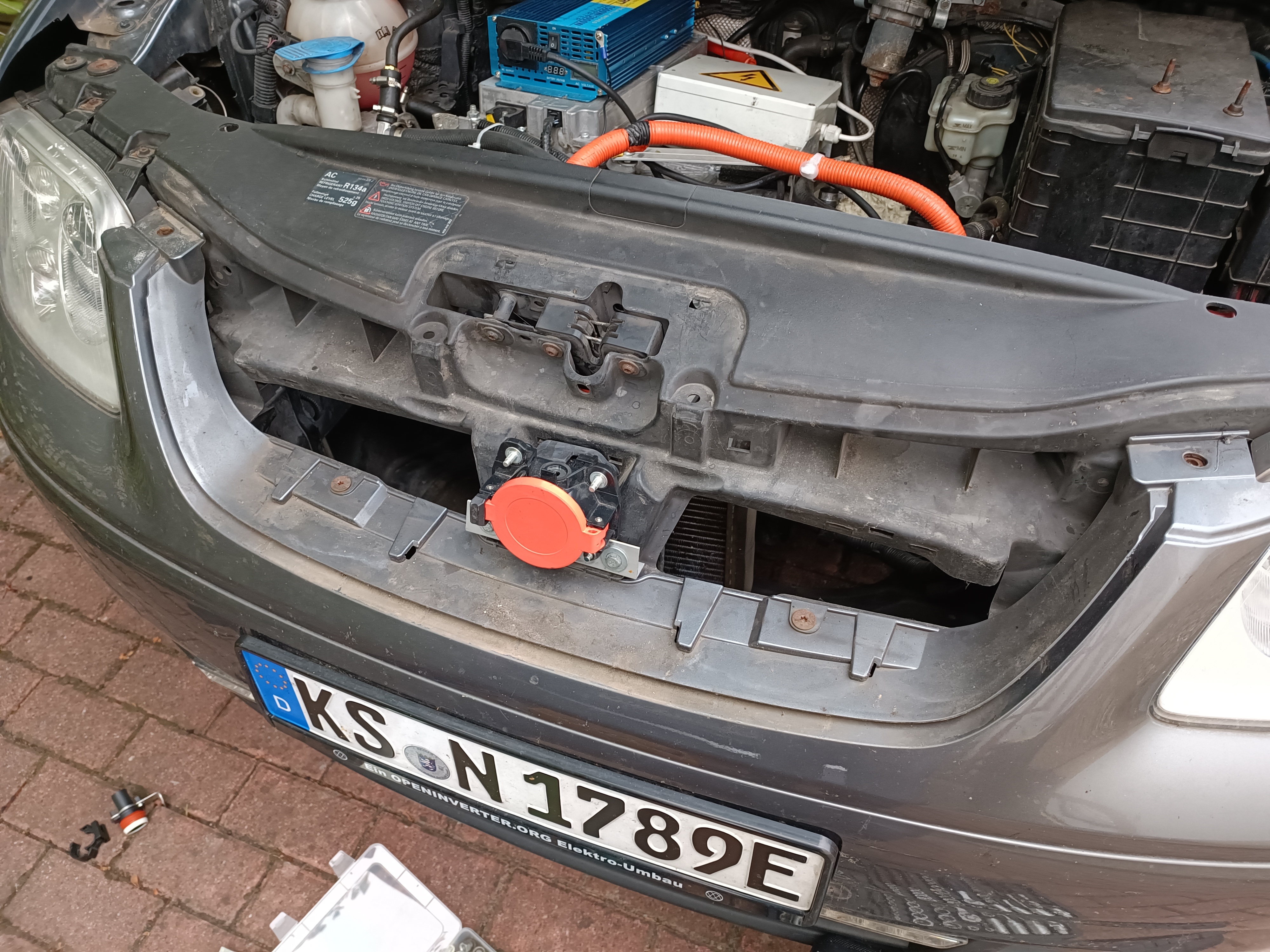 Now, the fuel filler is already taken by CHAdeMO, so needing another spot for the type-2 inlet. Did have to remove the locking mechanism, not too worried about it.