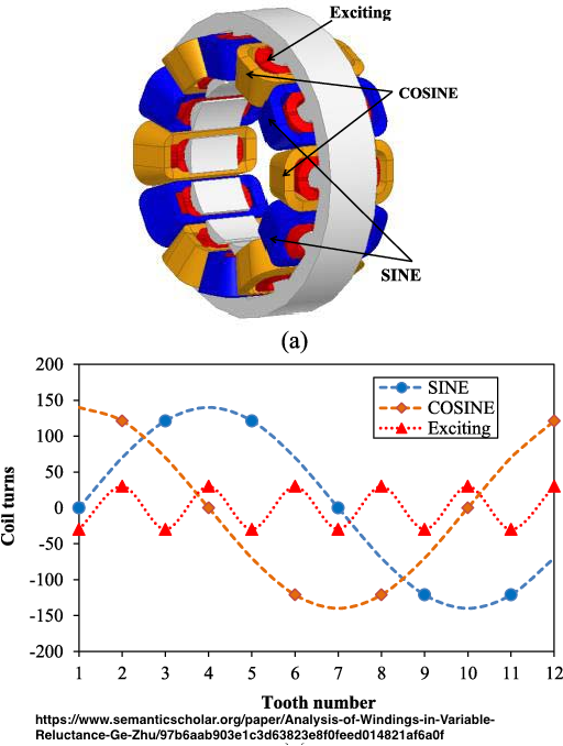 Exciter and resolver coils are placed in the same tooth! Exciter are in every tooth. Just unclear if the Tesla resolver has alternating sin and cos coils or all 3 coils integrated into each tooth.