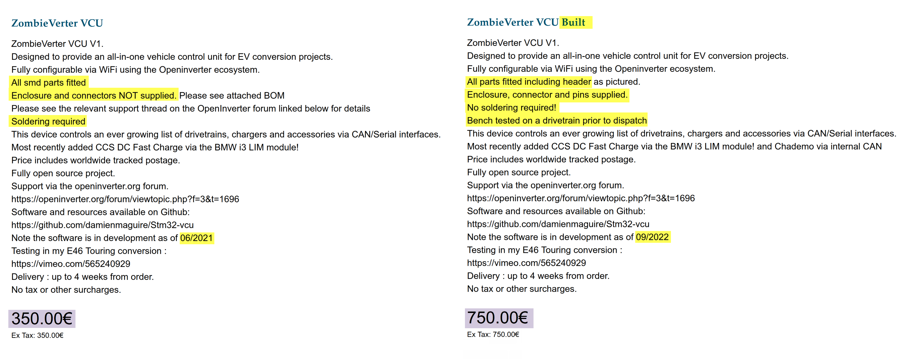 Following quite a few requests (and an easing up of parts supply) I am now offering a built and bench tested version of the VCU kit :
