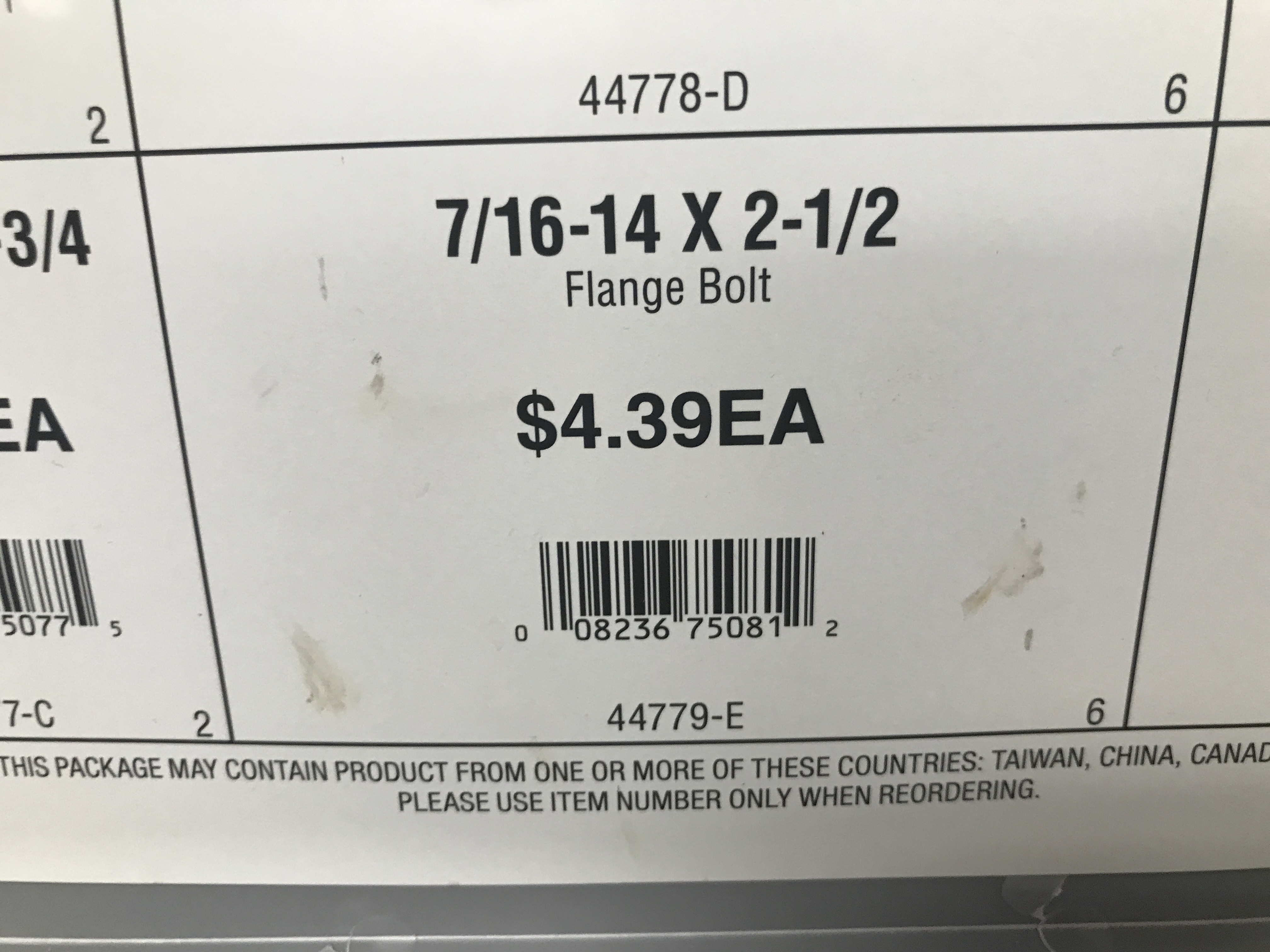 ah yup $4 bucks per bolt (that' not counting the fancy nut) the Matrix M12s were $7 bucks each