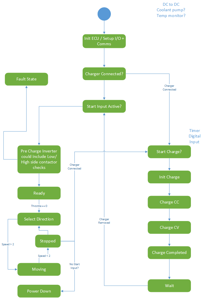 See attached my first attempt at drawing up a state diagram for the system including a charger.